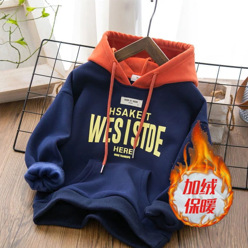 Casual Sweatshirt Kids Warm Thicken Tops Boys Hoodies Fashion Cartoon Tracksuit 2023 New Children Autumn And Winter Clothingz