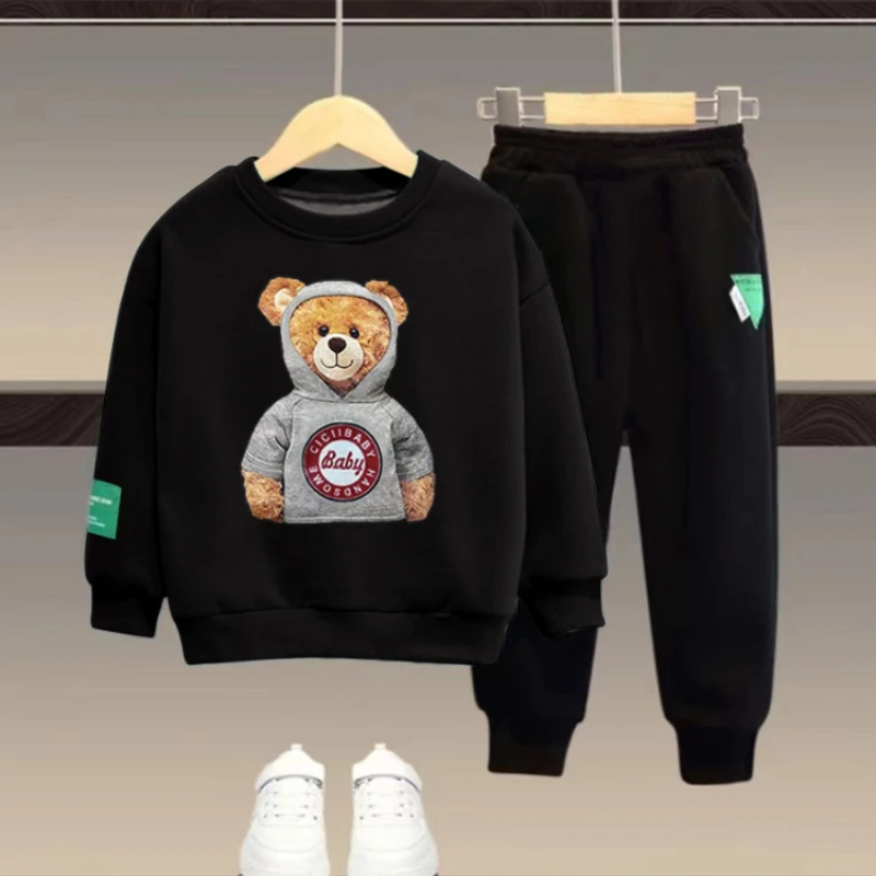 Children Boy Girl Clothes Teenage Embroidery Sweater Pullover Pants Outfit Kid Cartoon Bear Top and Bottom 2 Pieces Set Ropa