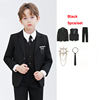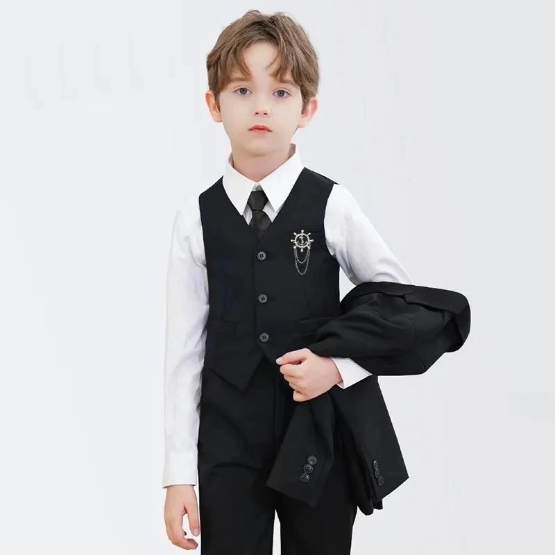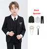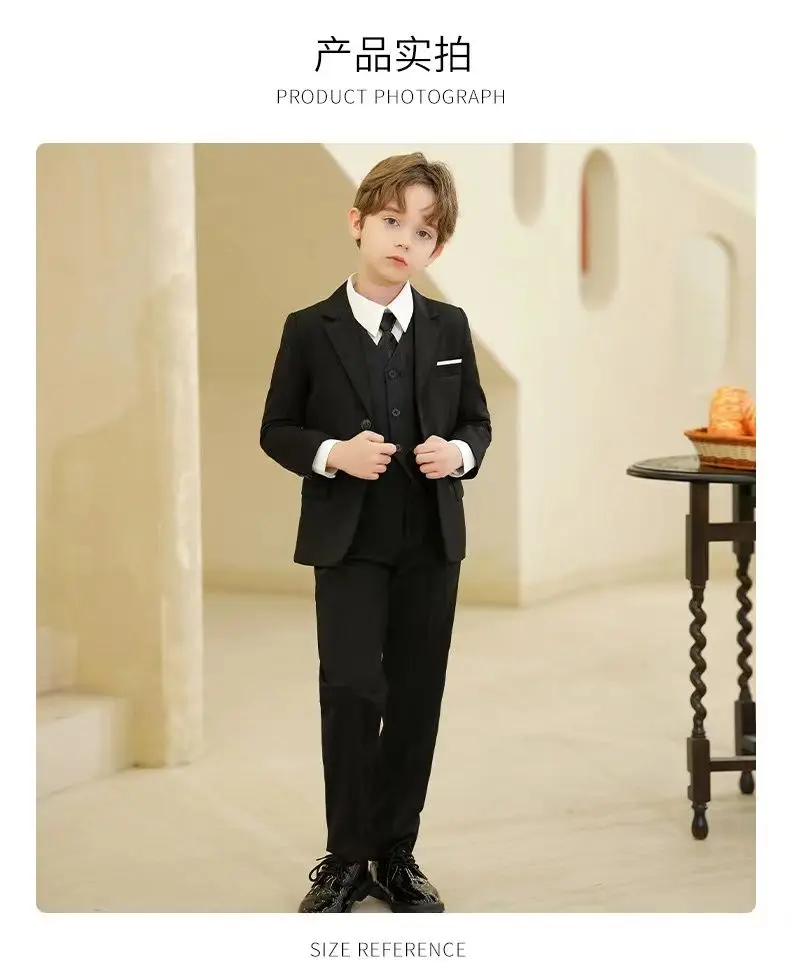Children Formal Slim Fit Black Navy Suit Set Children’s Piano Performance Wedding Party Dress Kids Blazer Pants Tie Clothes