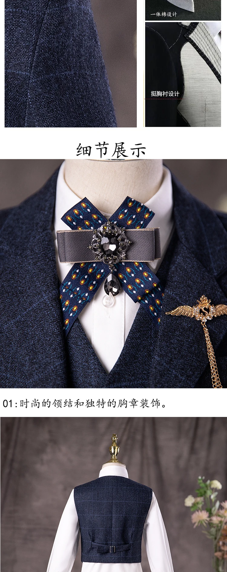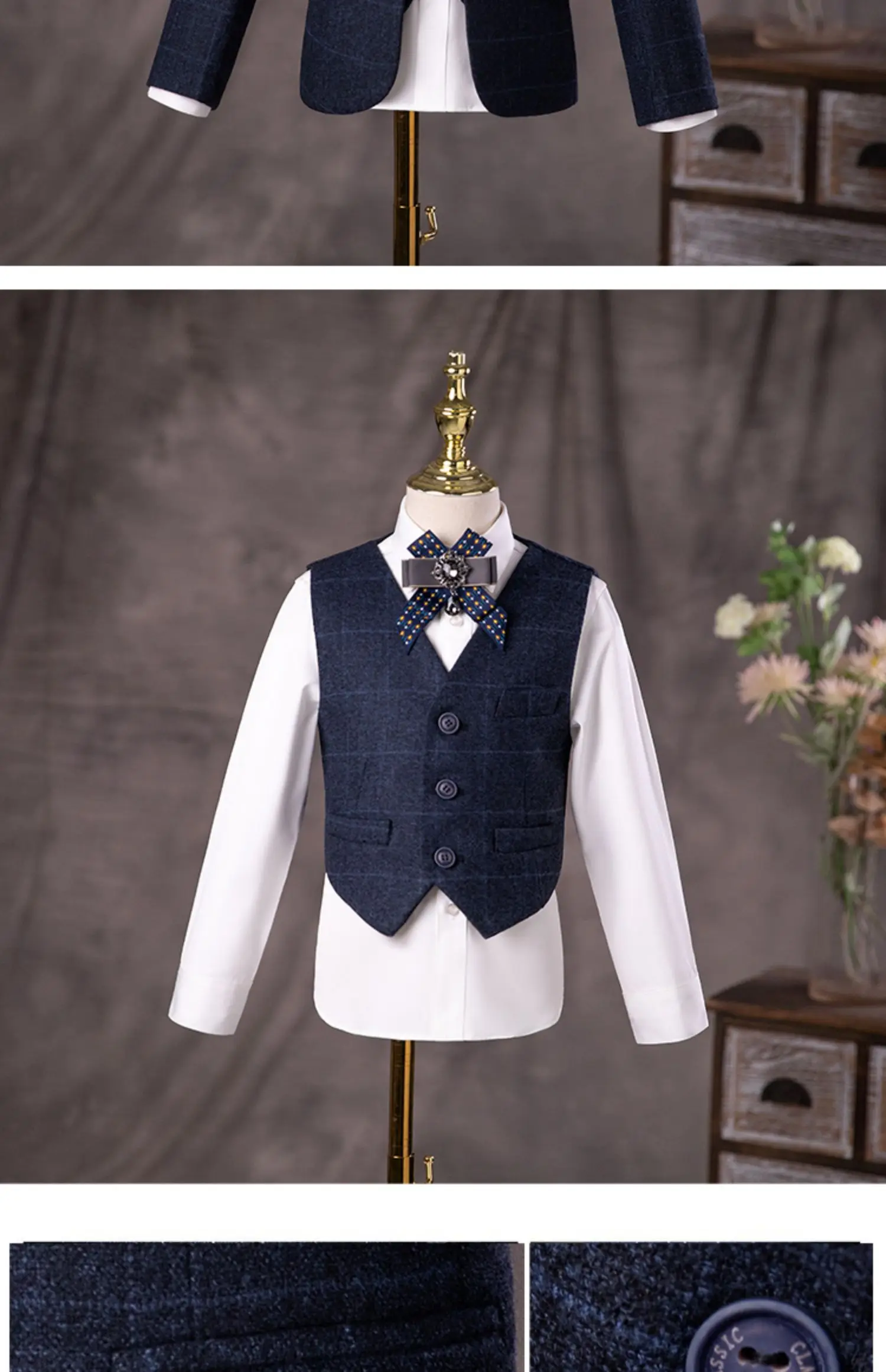 Children’s British Style Suit Set Boy Catwalk Wedding Baby Birthday Host Piano Performance Costume Autumn Winter Kids Blazer