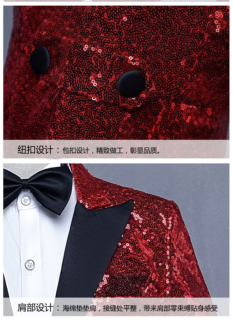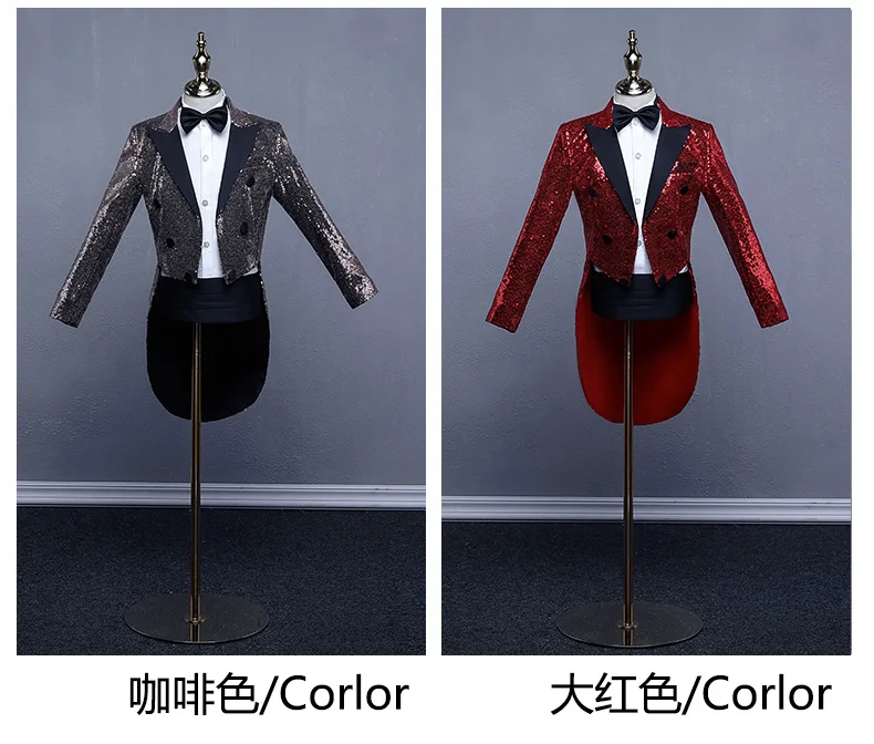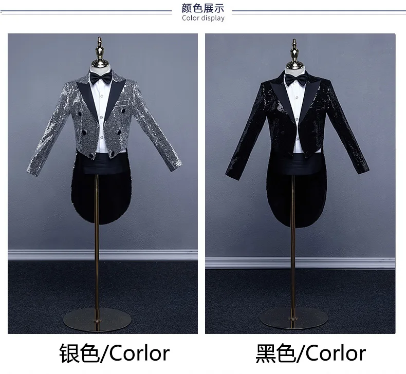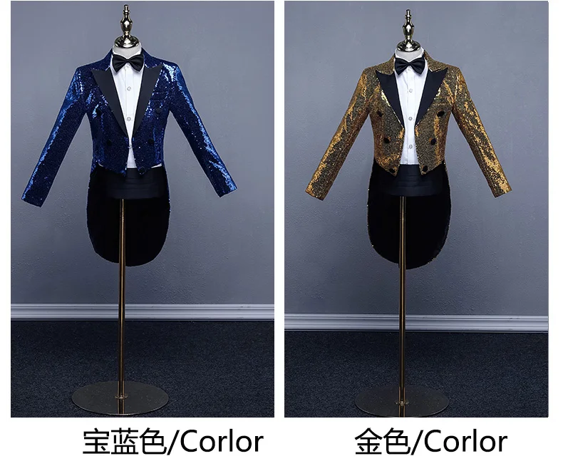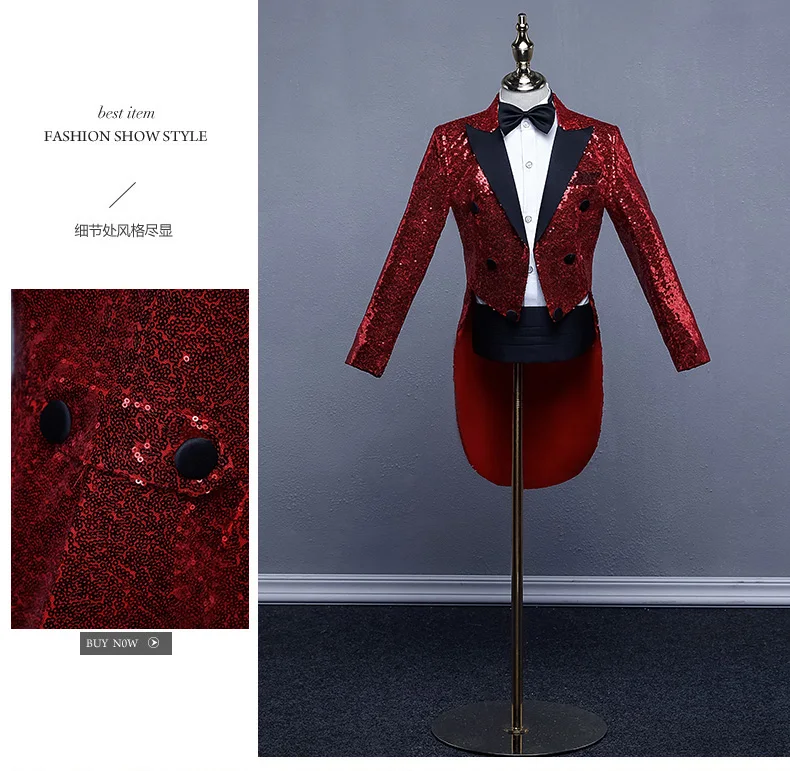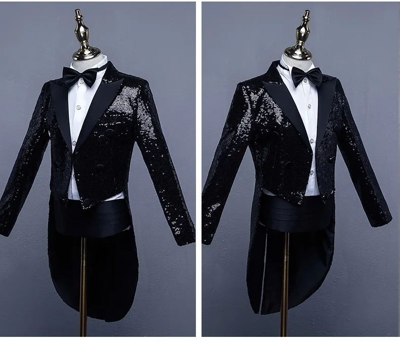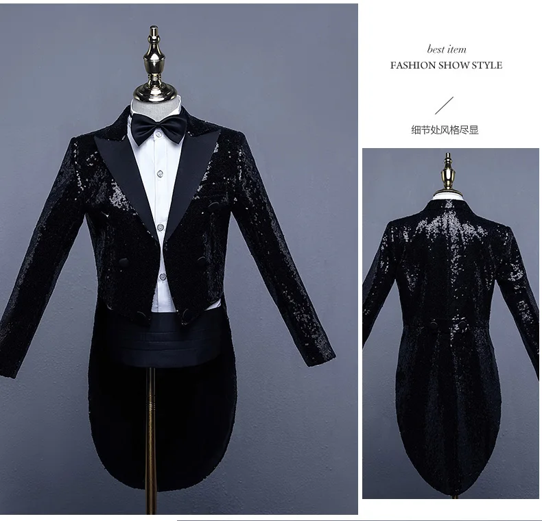 Children’s Formal Tuxedo Suit Boys Performance Piano Catwalk Competition Host Dress Costume Kids Sequins Fashion Tops
