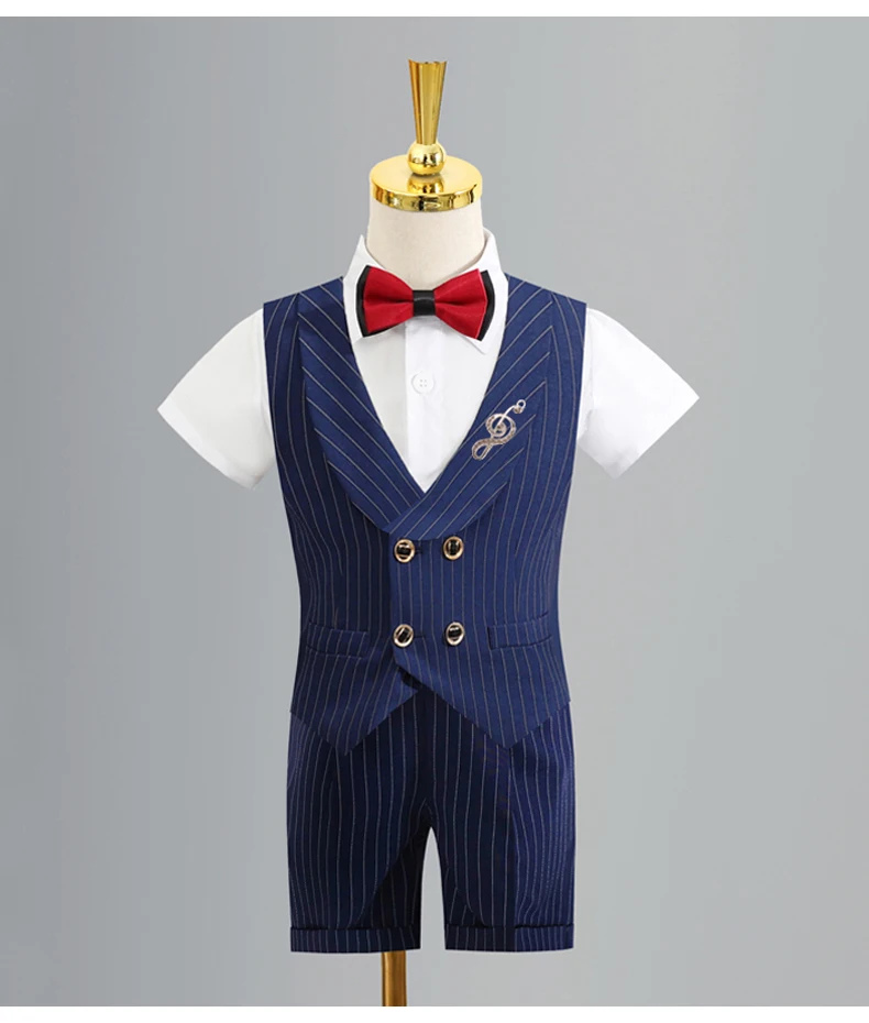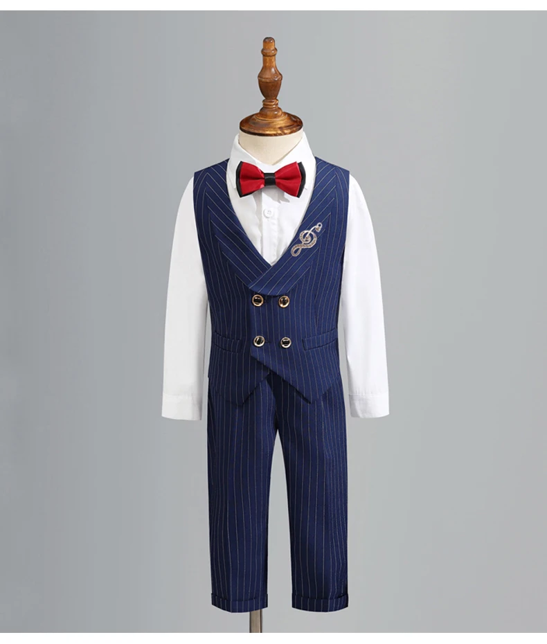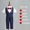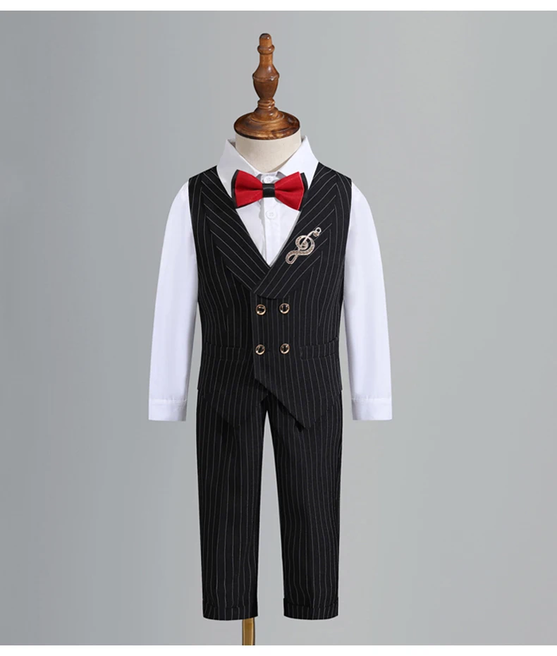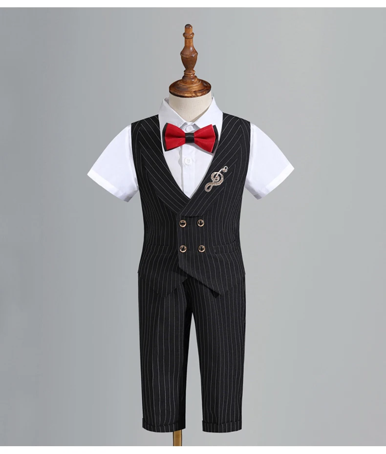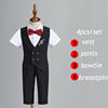Children’s Vest Dress Suit Set Spring Summer Boys’ Performance Party Wedding Costume Kids Striped waistcoat Pants Bowtie Clothes