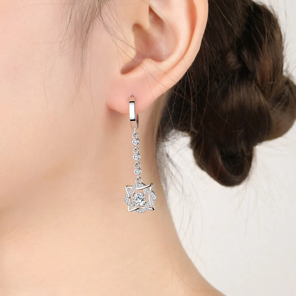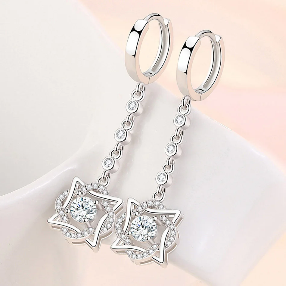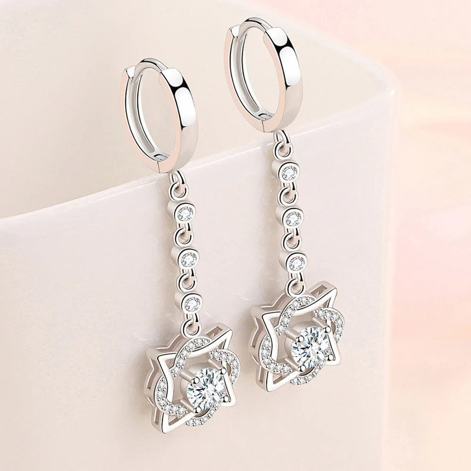 CHSHINE 925 Sterling Silver Hexagram AAAAA Zircon Earrings For Women Wedding Party Gift Fashion Jewelry