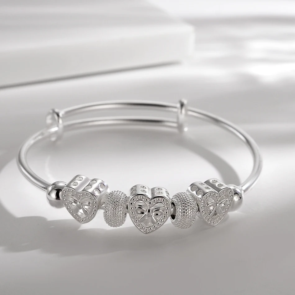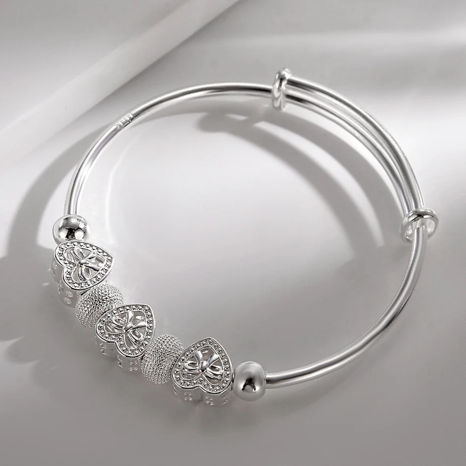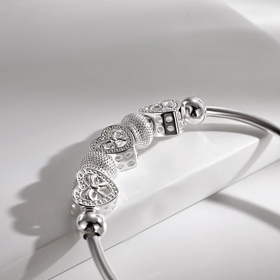 CHSHINE Fine 925 Sterling silver for woman Heart Bangles lady bracelets wedding party jewelry Holiday gifts designer charms