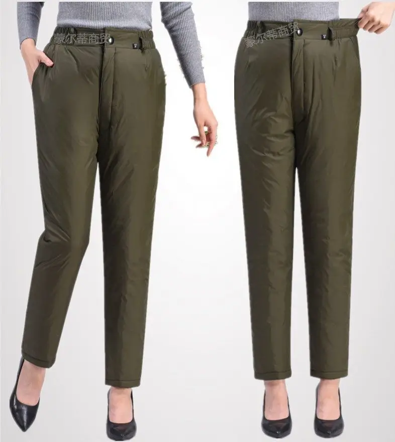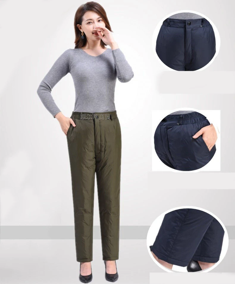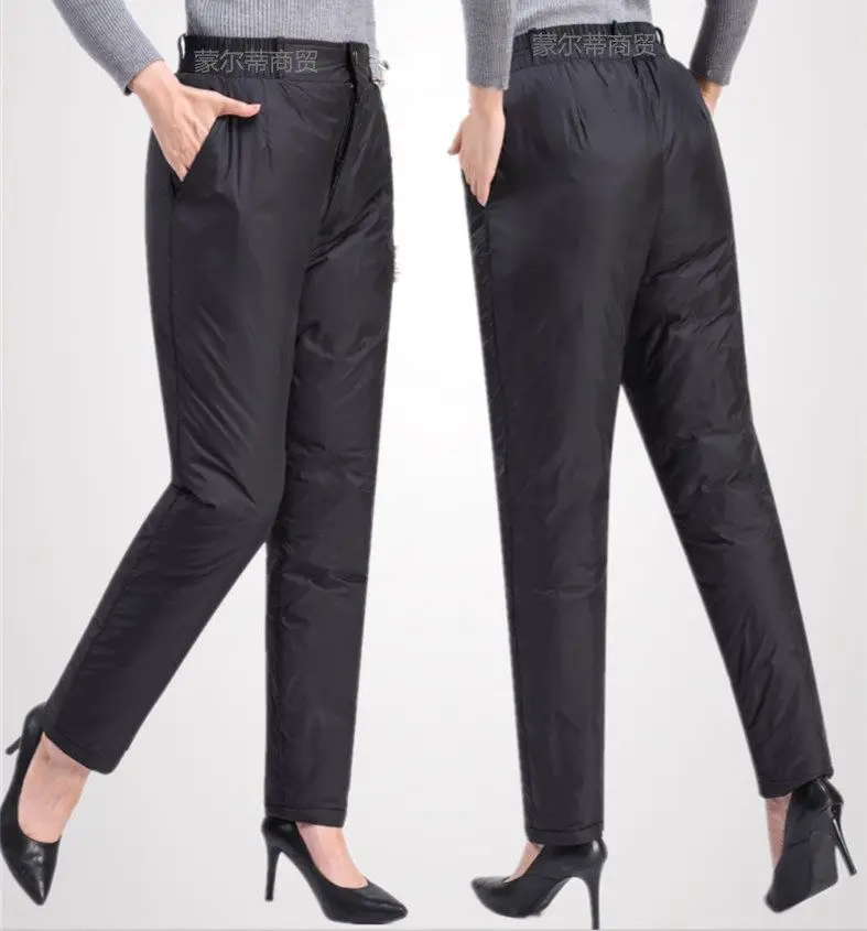 Classic Warm Black Winter Pantalones Mother’s Elastic Waist Thicken Snow Trousers 6XL Oversized White Duck Down Pants Women