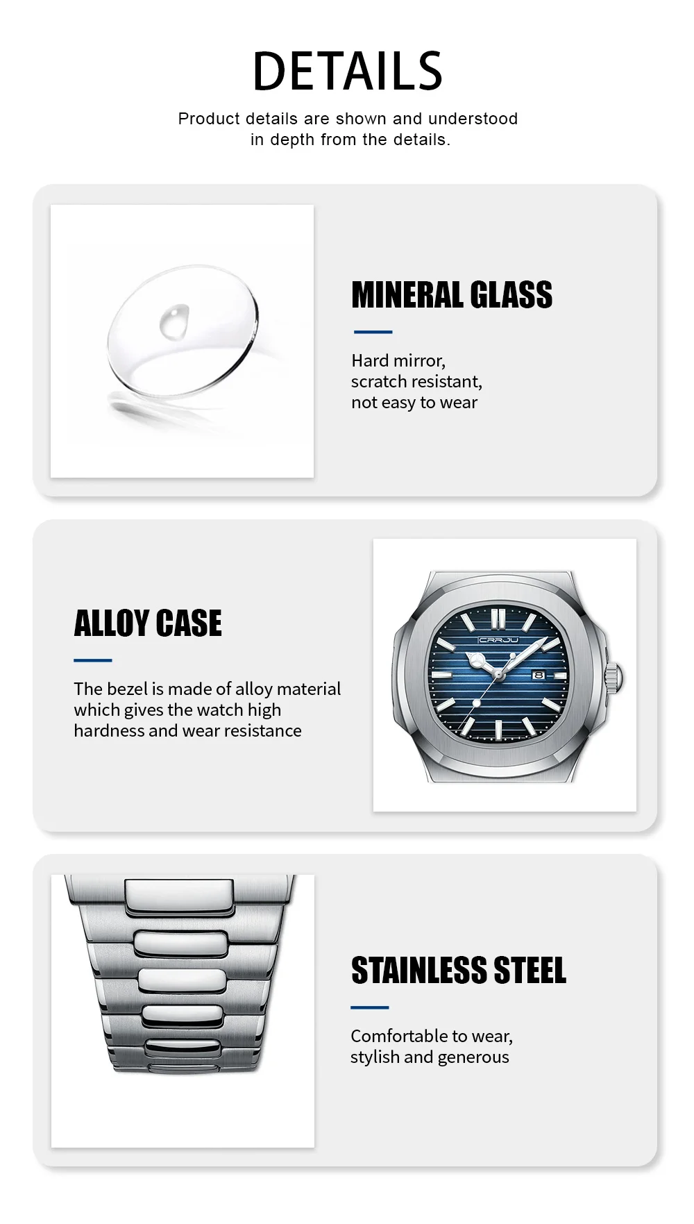 CRRJU 2024 Men Watch Stainless Steel Band Date Mens Clock Business Male Watches Waterproof Luxuries Man Wrist Watches for Men