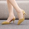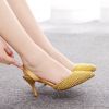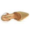 Crystal Queen Women Gold Pearl Pumps Slingback High Heels Elegant Medium Lady Stiletto Sexy Wedding Shoes