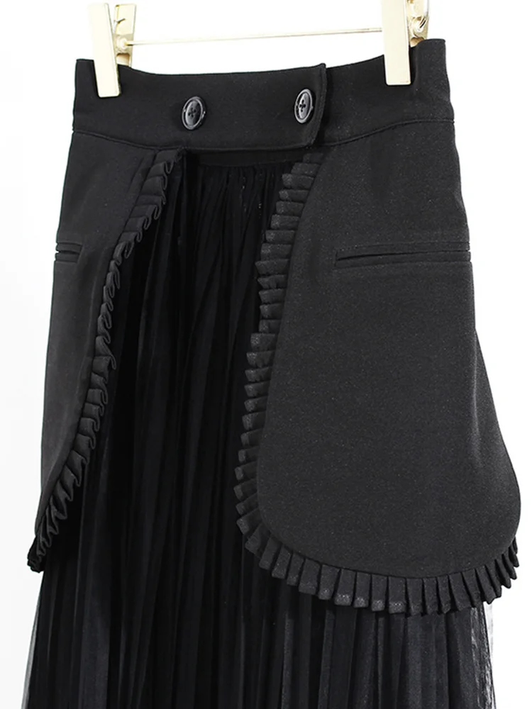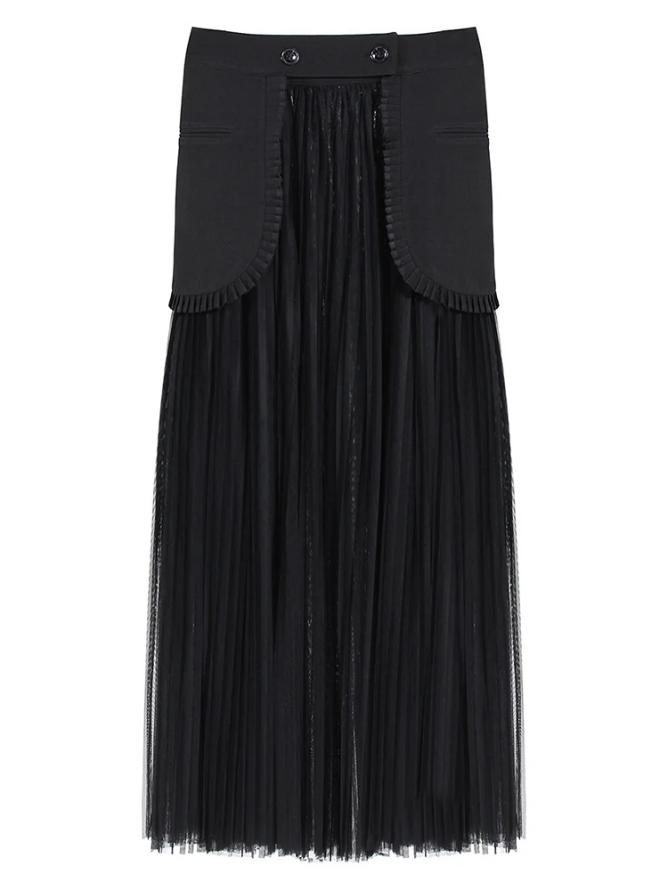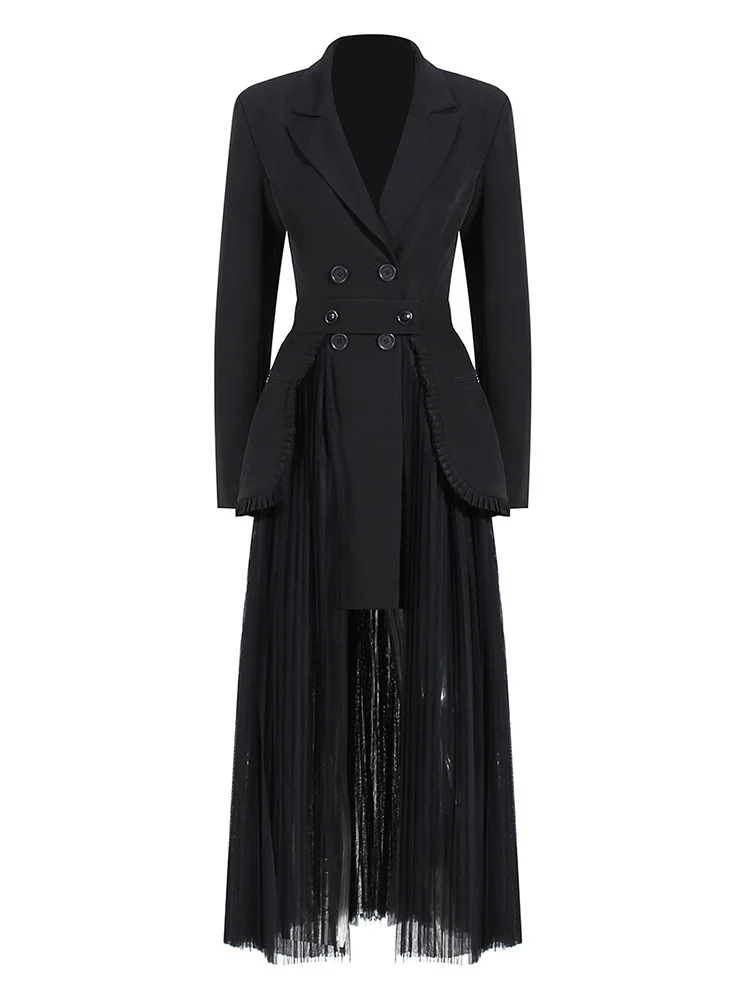 DEAT Fashion Women’s 2 Pcs Sets Notched Double Breasted Long Sleeve Blazer High Waist Mesh Skirt Suit Spring 2024 New 17A578