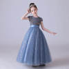 Dideyttawl Blue Dress For Girl O-Neck Shiny Tulle Bow Sequins Flower Girl Dresses Kids Birthday Formal Princess Gowns