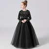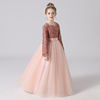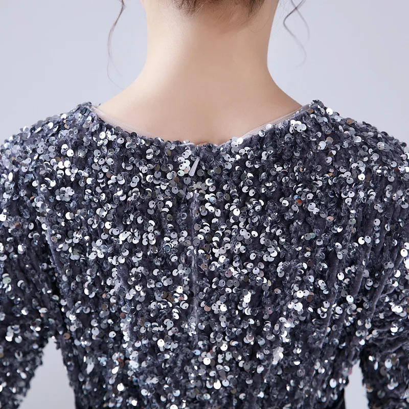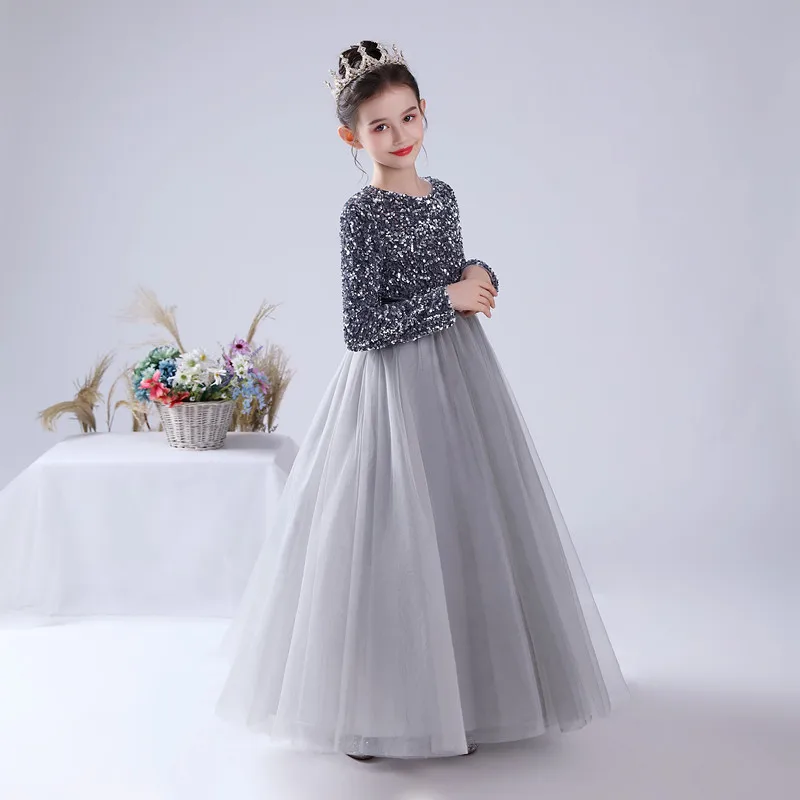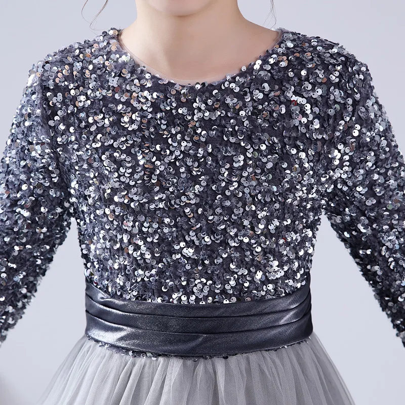 Dideyttawl Junior Girls Formal Pageant Party Princess Gown Long Sleeve Grey Sequins Flower Girls Dress Wedding Birthday Party