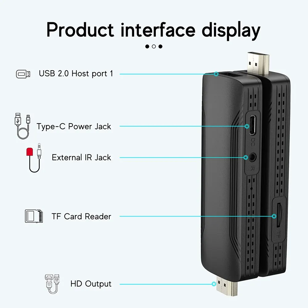 1 x dq06 TV stick/1 x BT voice remote/1 x HD cable/1 x USB-typc C cable/1 x IR extend cable/1 x User Manual
