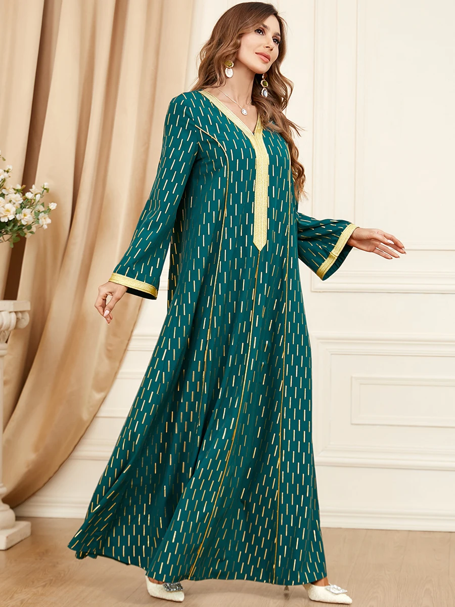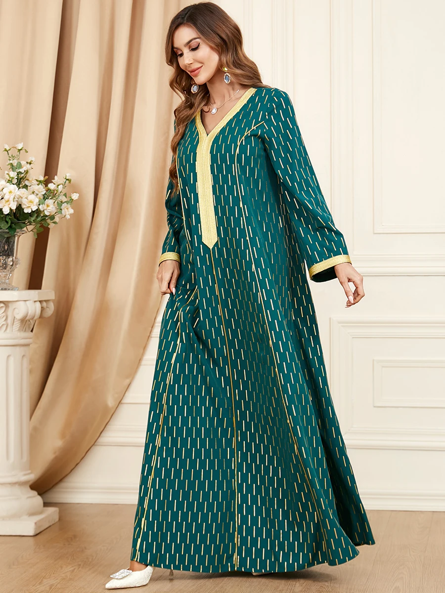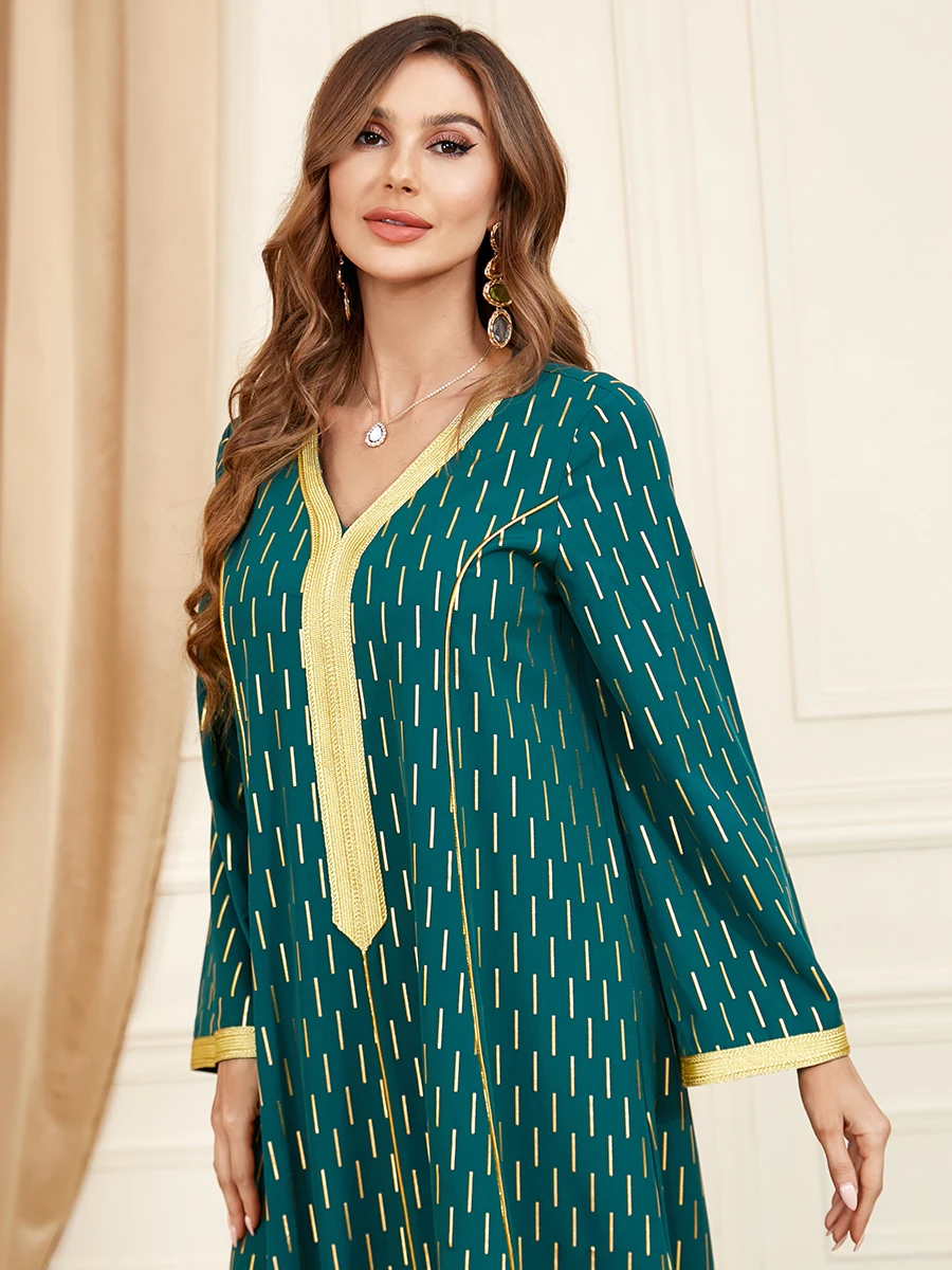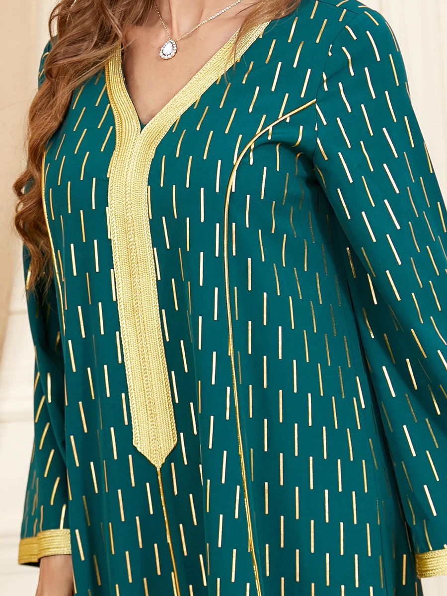 Dress Ramadan Takshita Moroccan Elegant Casual Loose V-Neck Lace Tape Printed Long Dresses Abayas For Womens Dubai