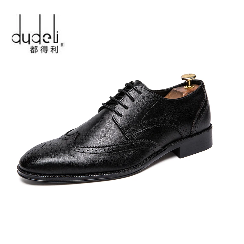 DUDELI 2020 Brogue Formal Shoes Men Dress Leather Shoes Fashion Men Flats Shoes Genuine Retro Pointed Toe Oxford Male Footwear