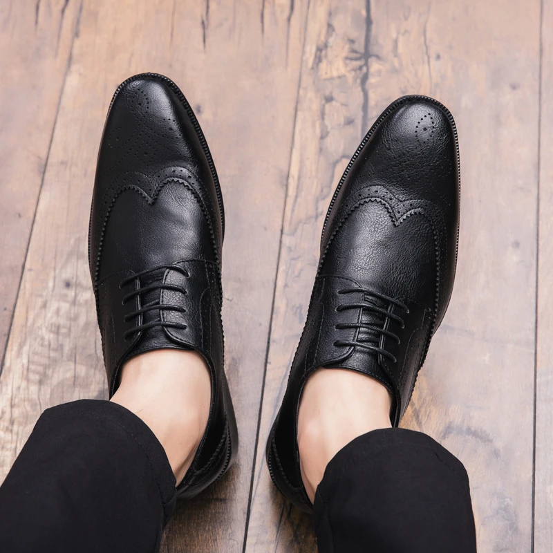 Luxury Brand Genuine Leather Men Dress Shoes Brogue Oxfords
