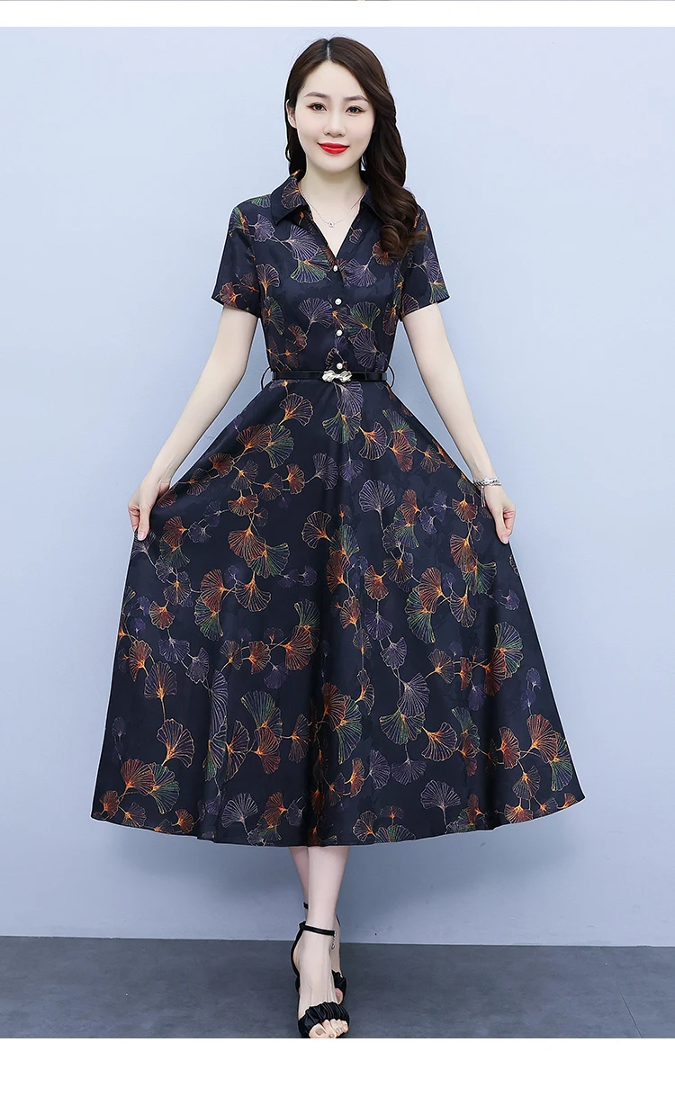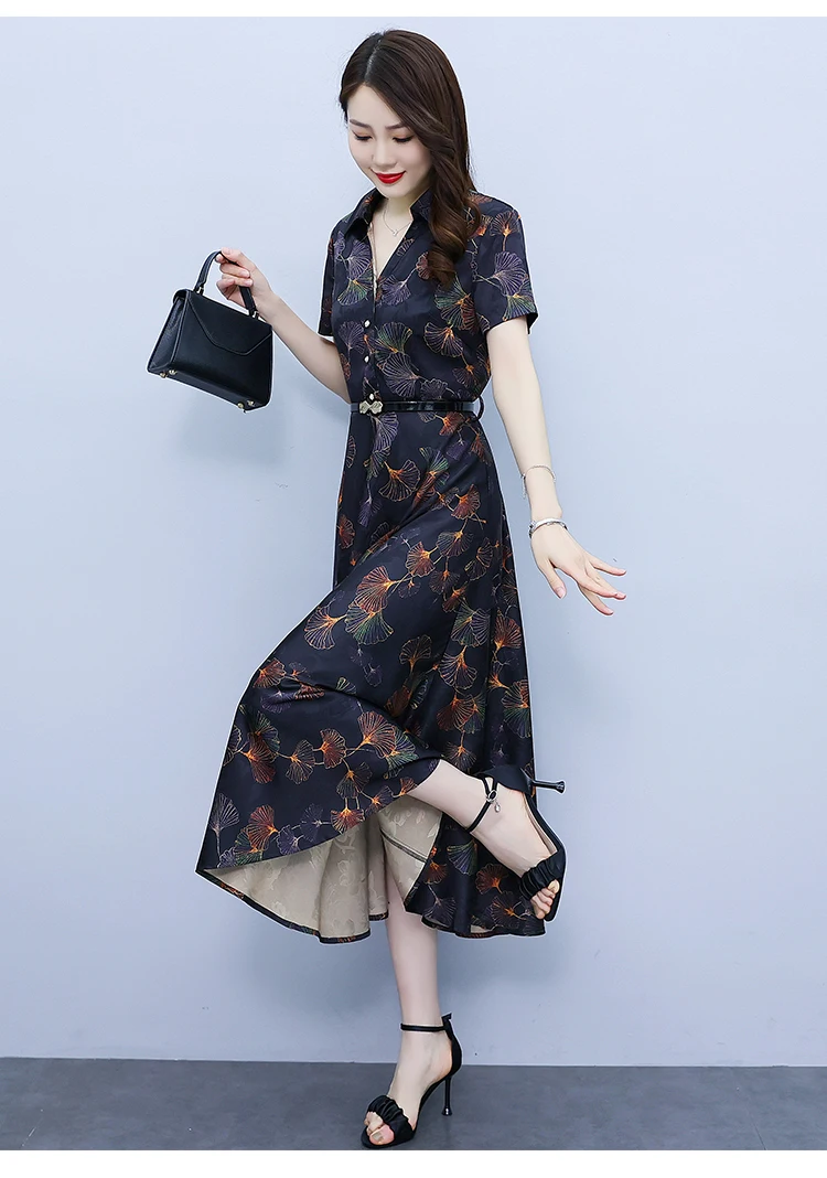 Elegant Bodycon Silk Party Dress for Women Summer Short Sleeve Chic Prom Midi Dress 2024 Vintage Print Luxury Night Maxi Dress