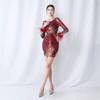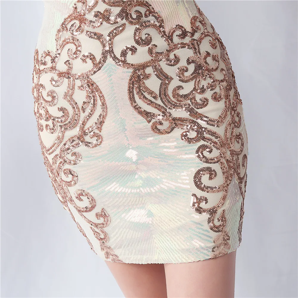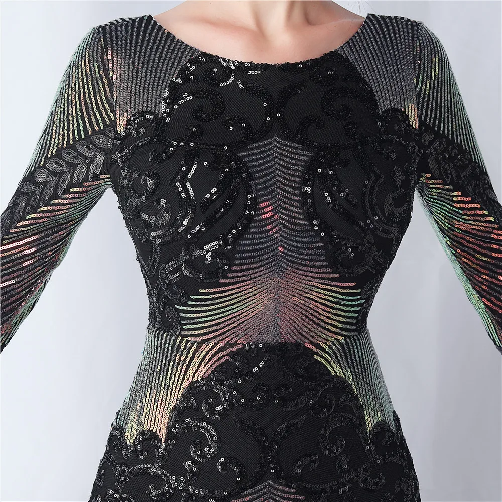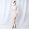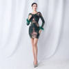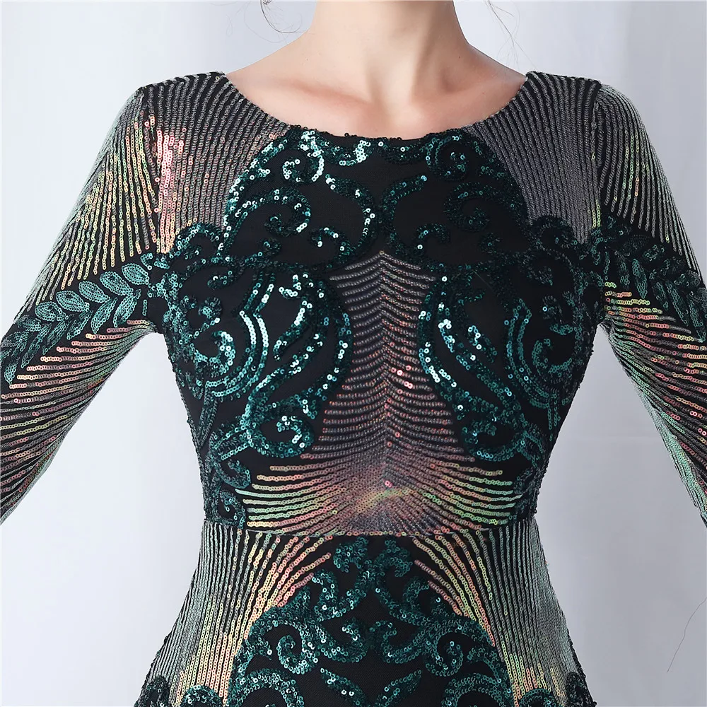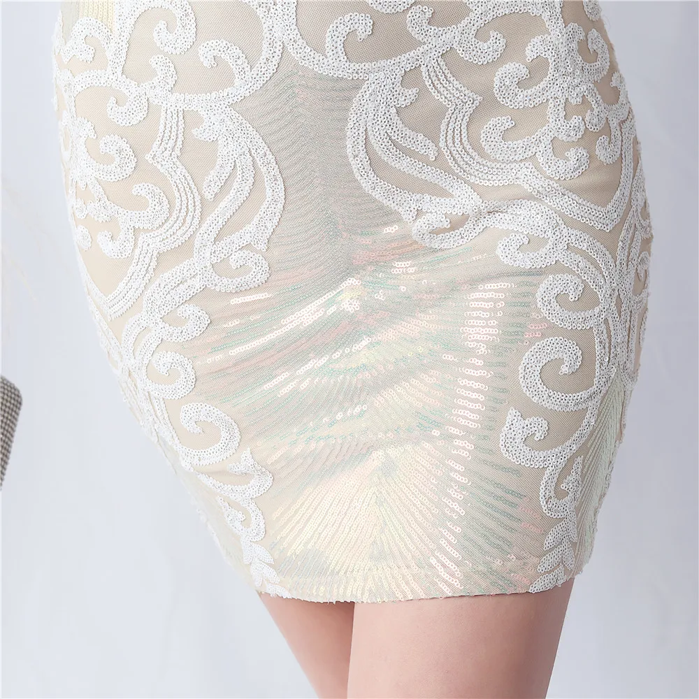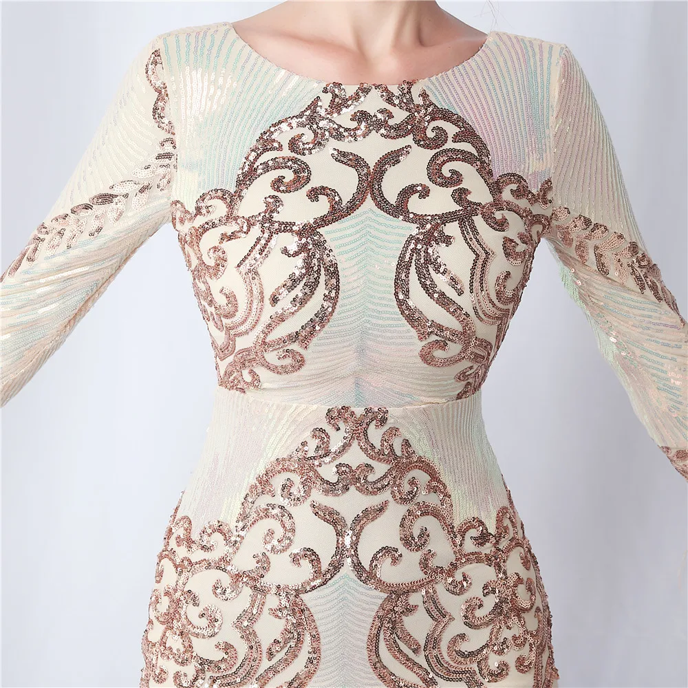 Elegant O-Neck Sequin Short Prom Dress with Long Feather Sleeves