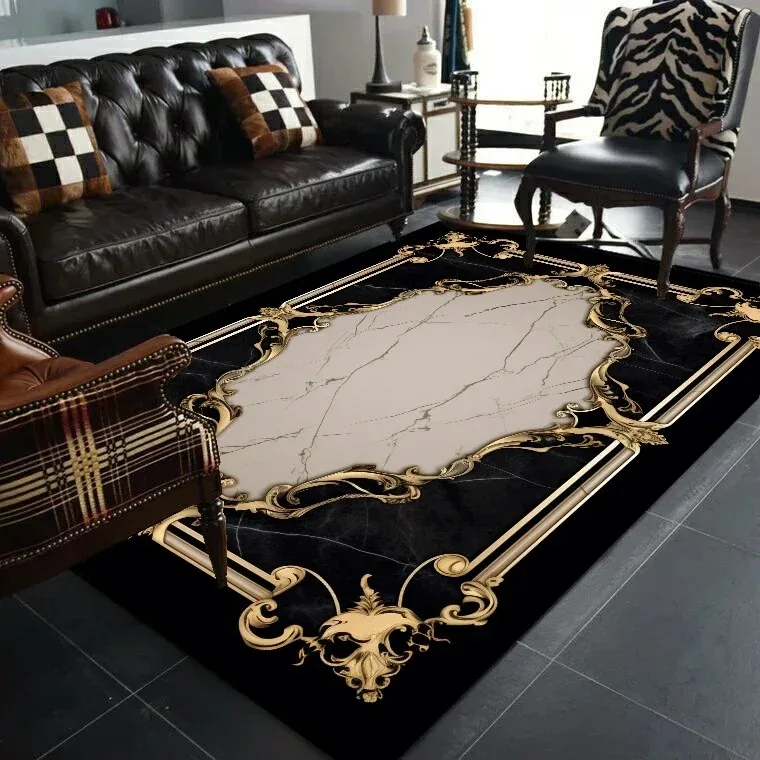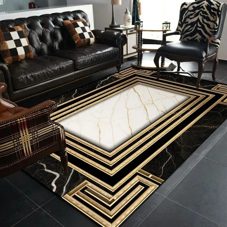 Europe Luxury Black Gold Carpet Living Room Sofa Floor Decor Mat Home Simple Bedroom Soft Non-slip Doormats Rugs for Bathroom
