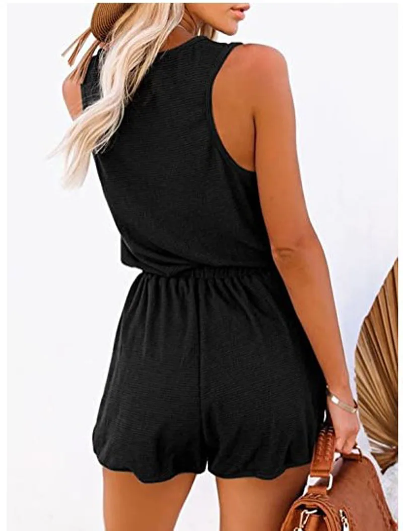 European and American Women’s Summer Cross-Border New Sleeveless Jumpsuit With Waist Tied Casual Loose Wide leg Shorts