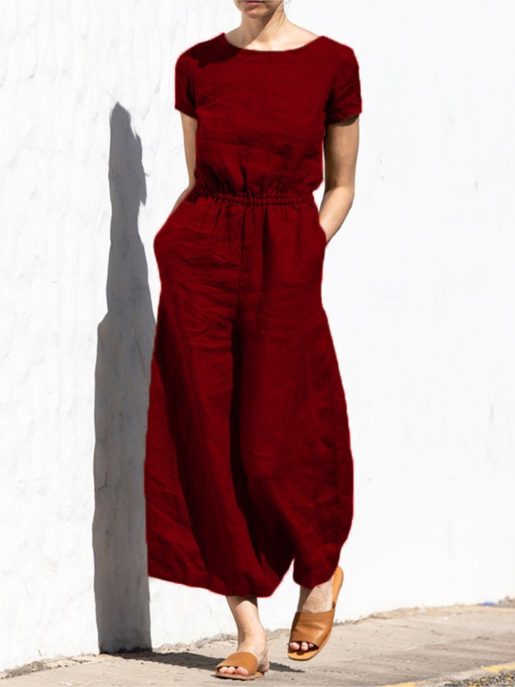 European and American Women’s Summer Cross-Border New Sleeveless Jumpsuit With Waist Tied Casual Loose Wide leg Shorts