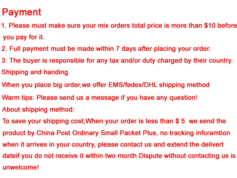 • If you did not receive the product within the guaranteed time( 45 days not including 2-5 day processing) you can request a refund or a reshipment.