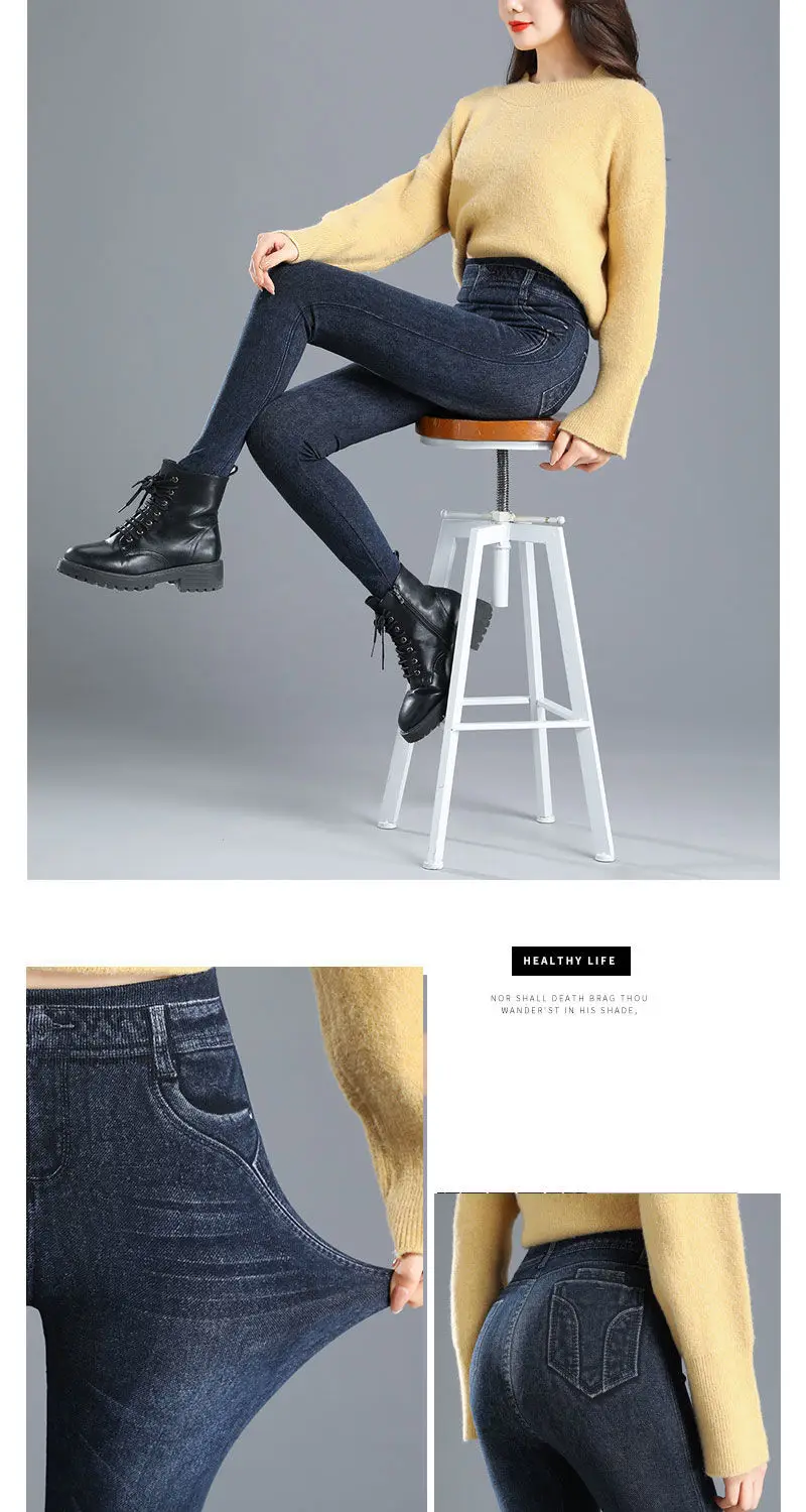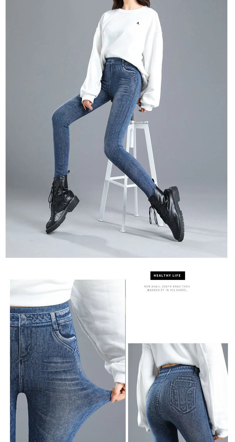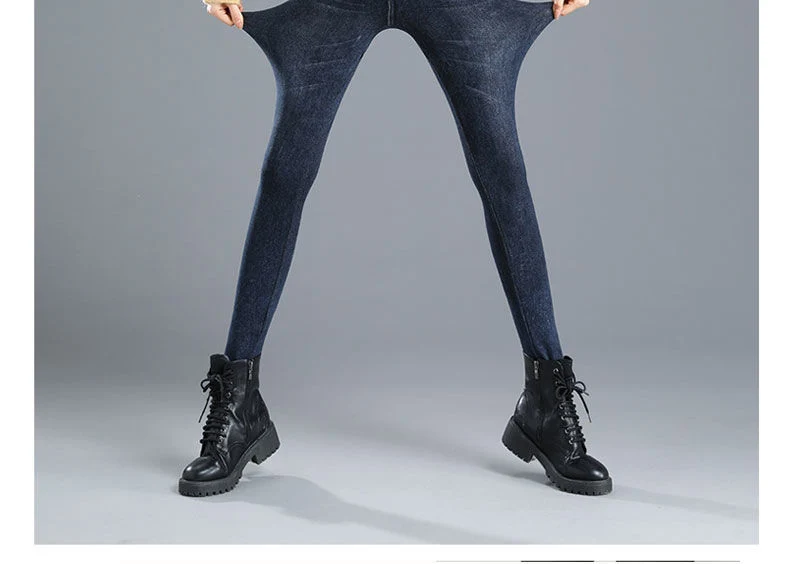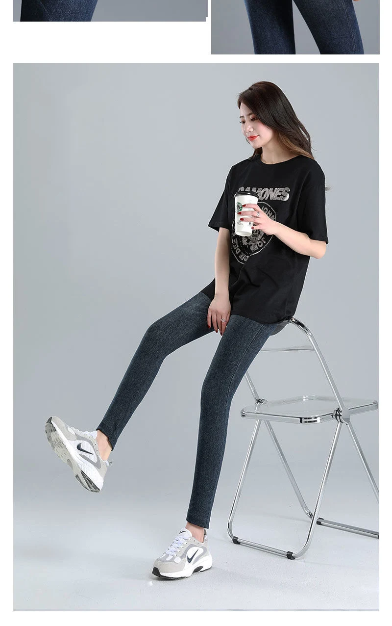 Fake Pocket Print Imitation Denim Leggings Women Skinny High Waist Pencil Pants Sexy Slim Pantalones Hip Lift Stretch Trousers