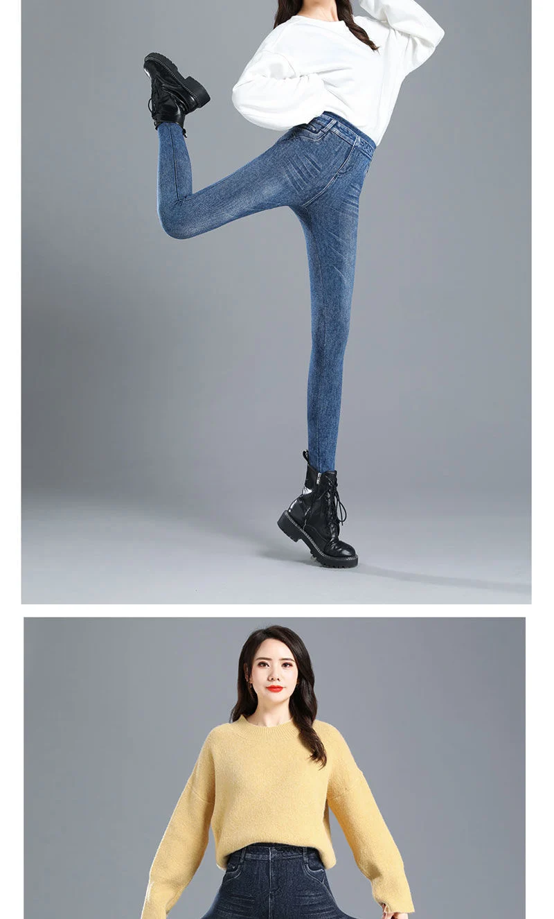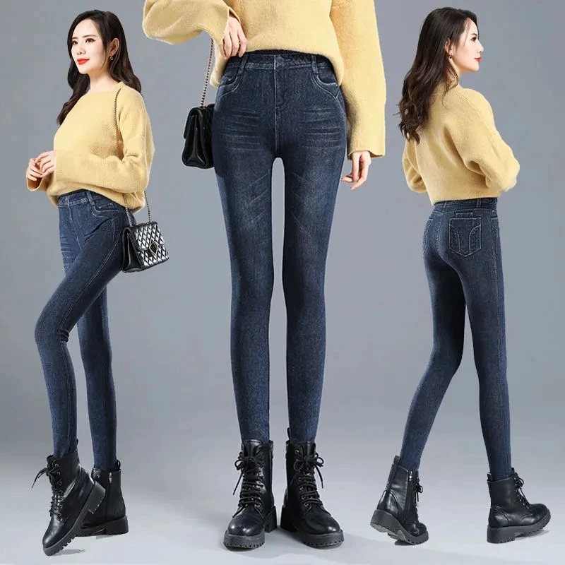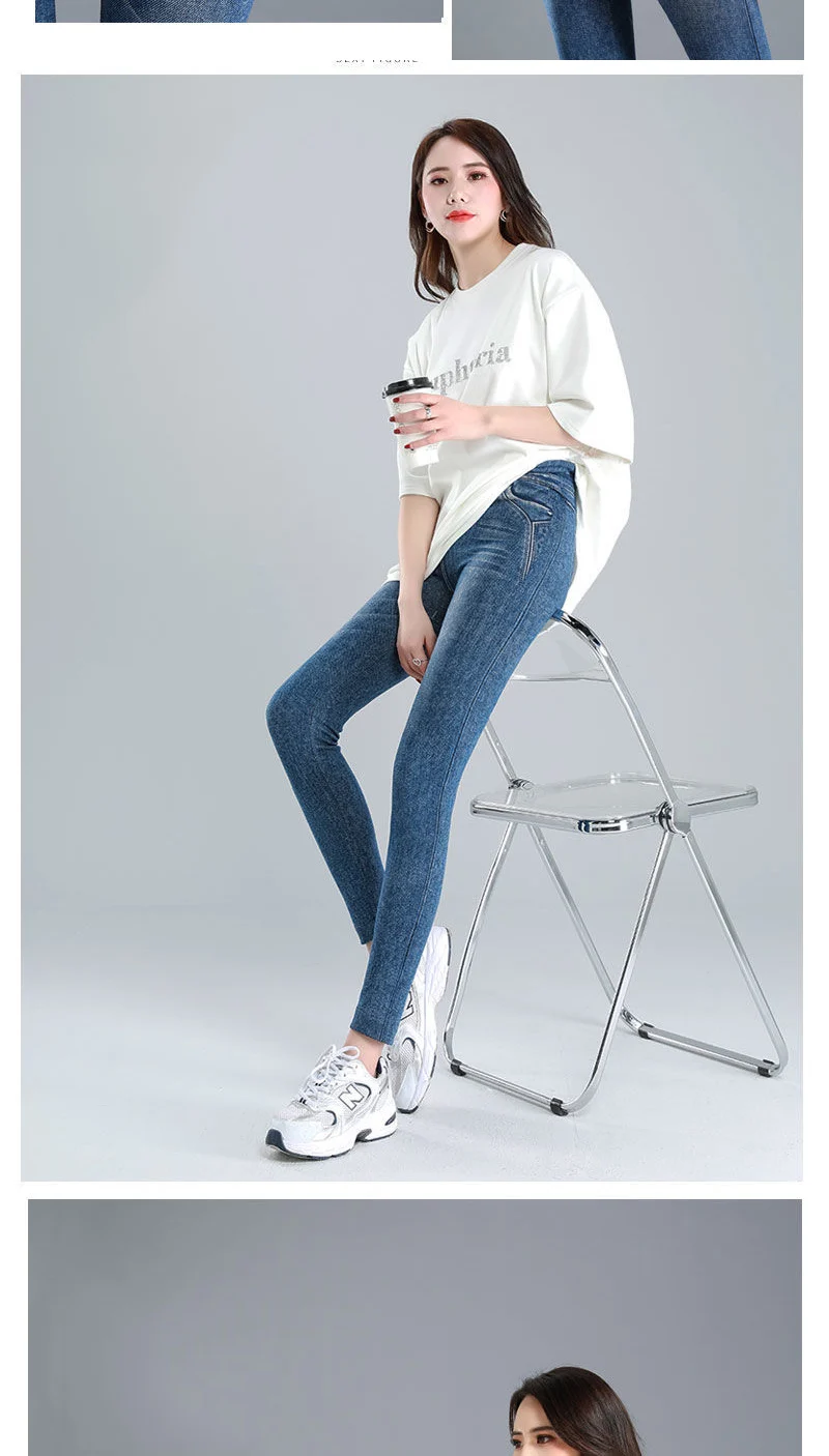 Fake Pocket Print Imitation Denim Leggings Women Skinny High Waist Pencil Pants Sexy Slim Pantalones Hip Lift Stretch Trousers