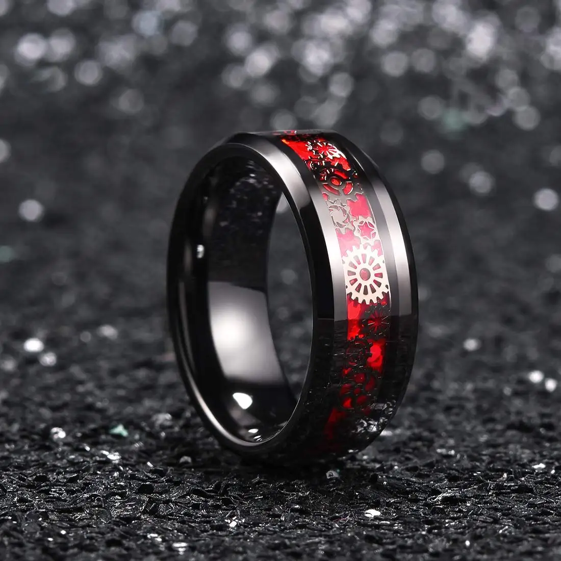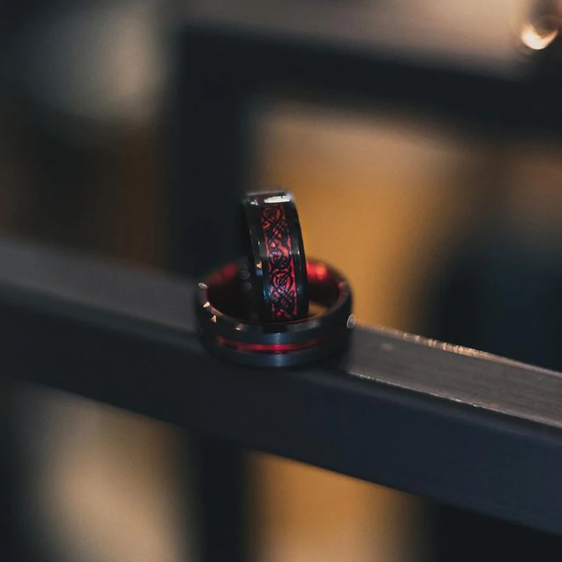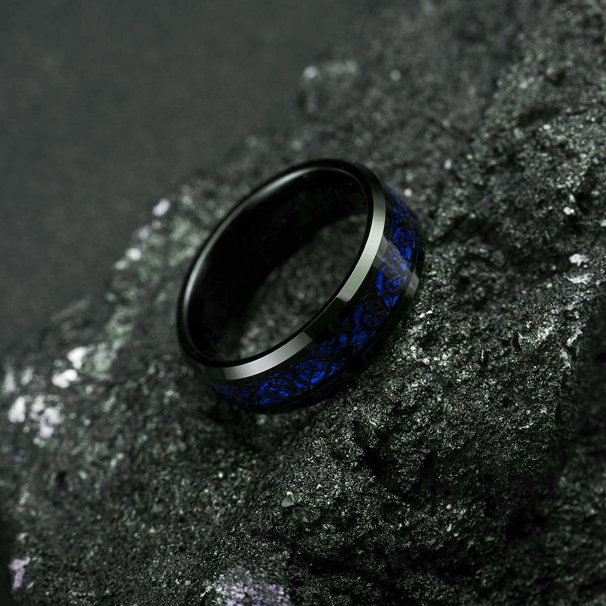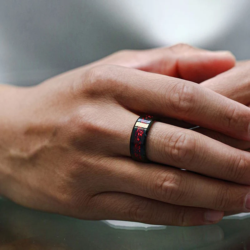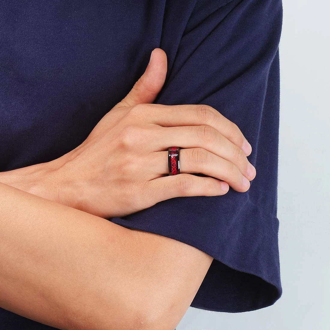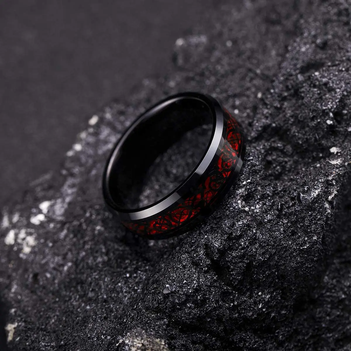 Fashion 8MM Men Stainless Steel Celtic Dragon Rings Inlay Red Carbon Fiber Rings For Men Women Wedding Party Jewelry Gifts