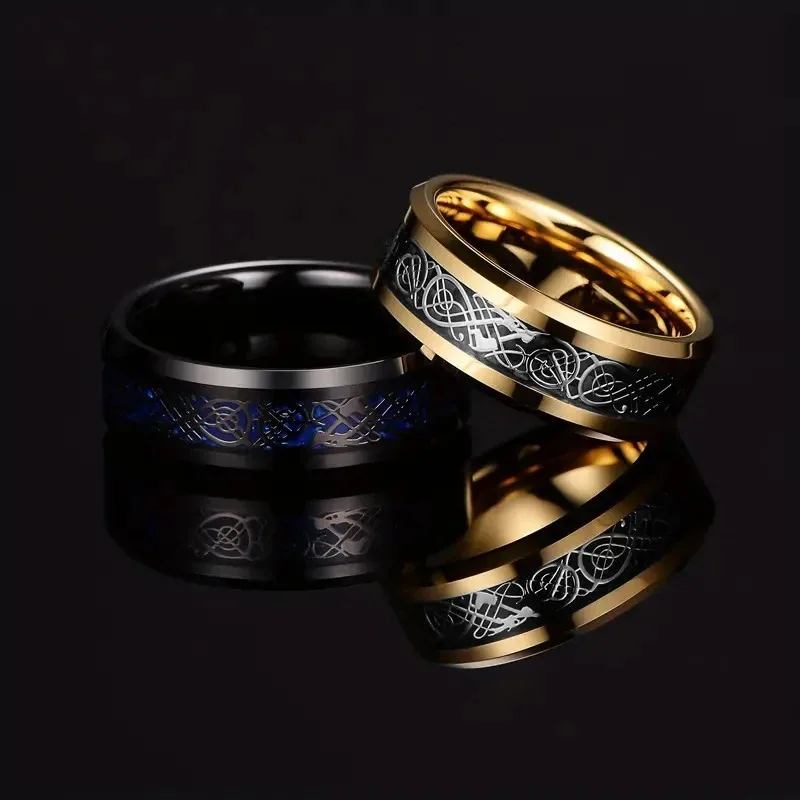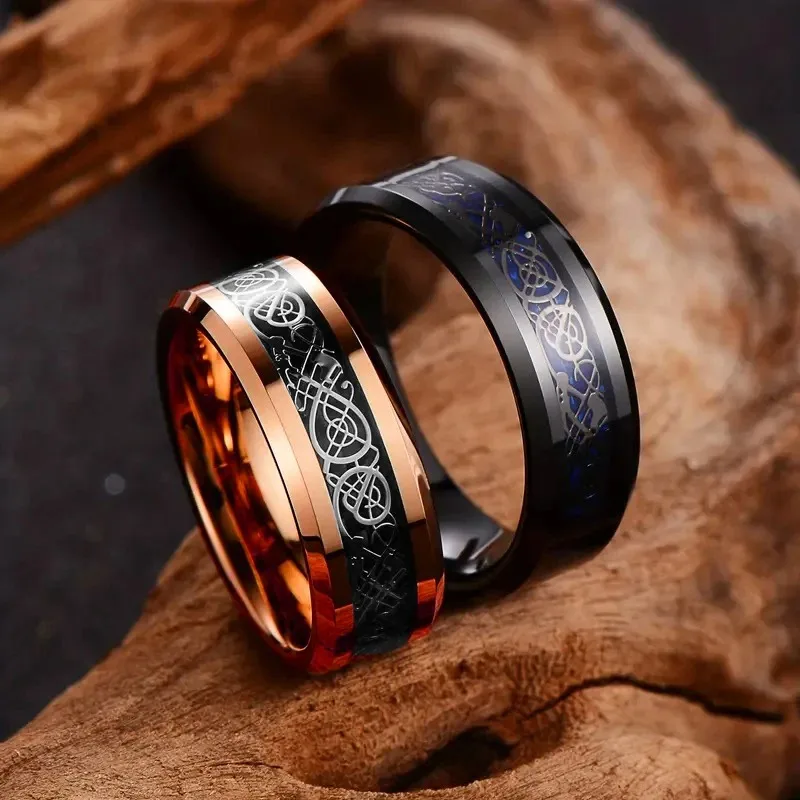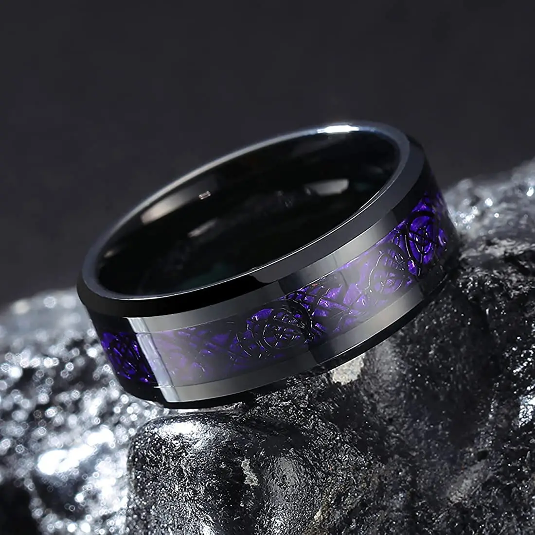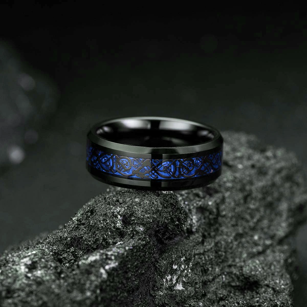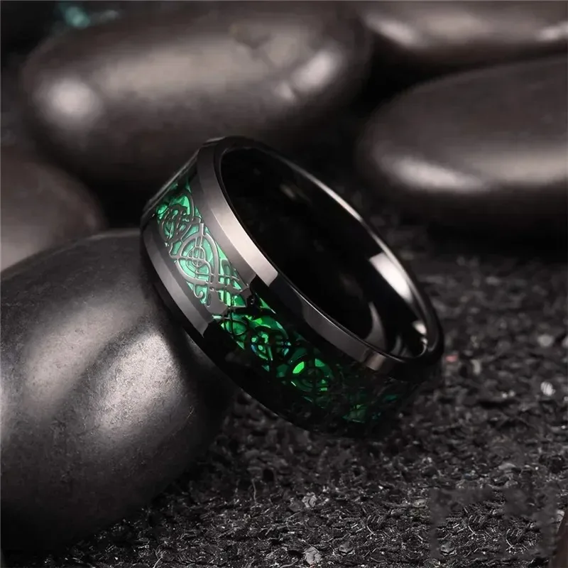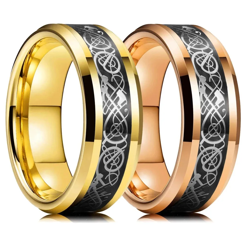 Fashion 8mm Men Stainless Steel Celtic Dragon Rings Inlaid Black Carbon Fiber Rings For Men Women Wedding Band Jewelry Wholesale