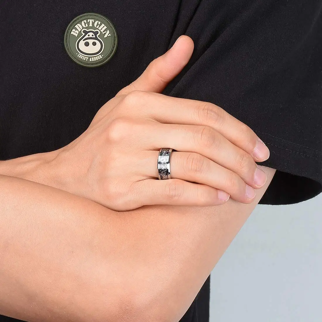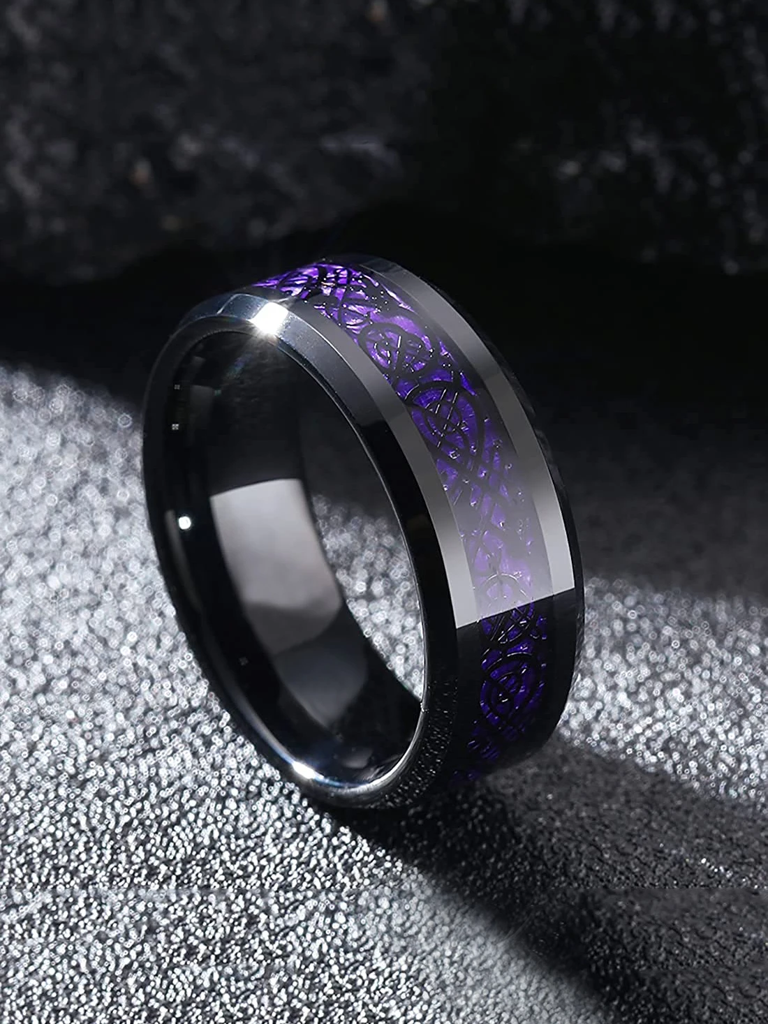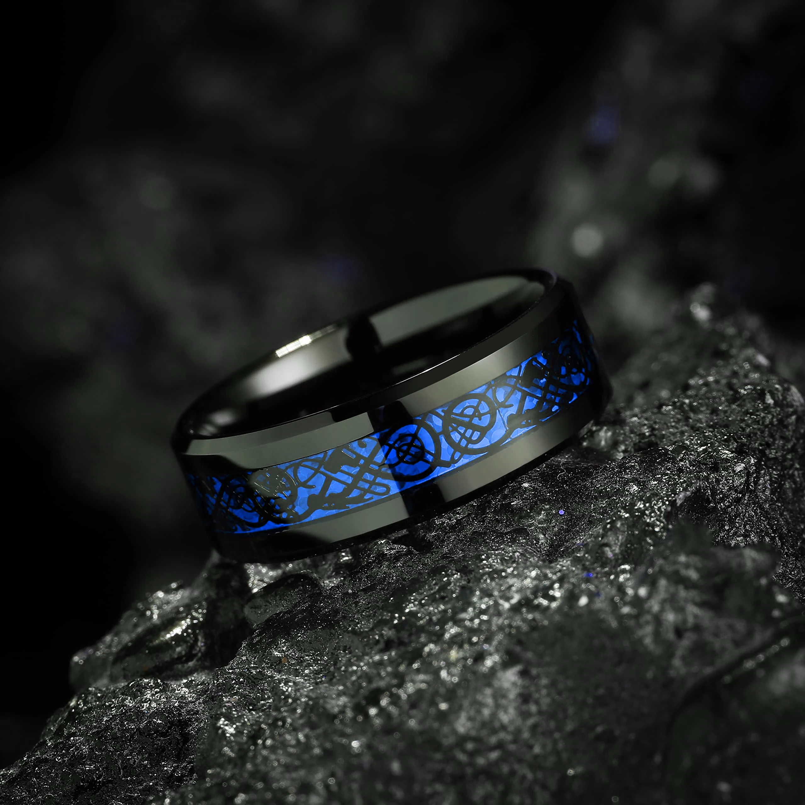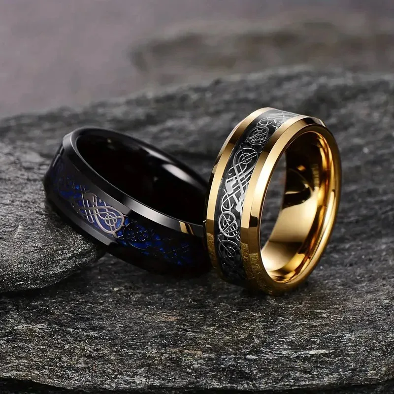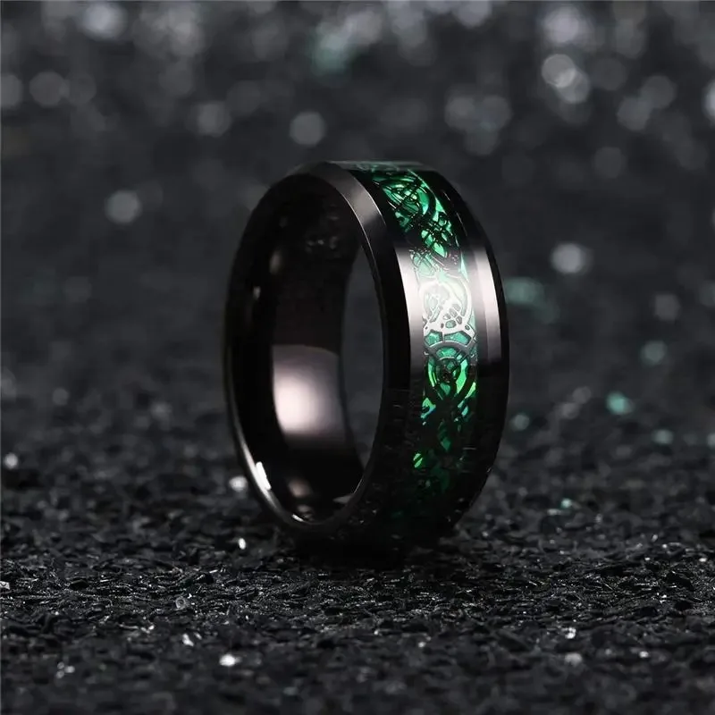 Fashion 8mm Men Stainless Steel Celtic Dragon Rings Inlaid Black Carbon Fiber Rings For Men Women Wedding Band Jewelry Wholesale