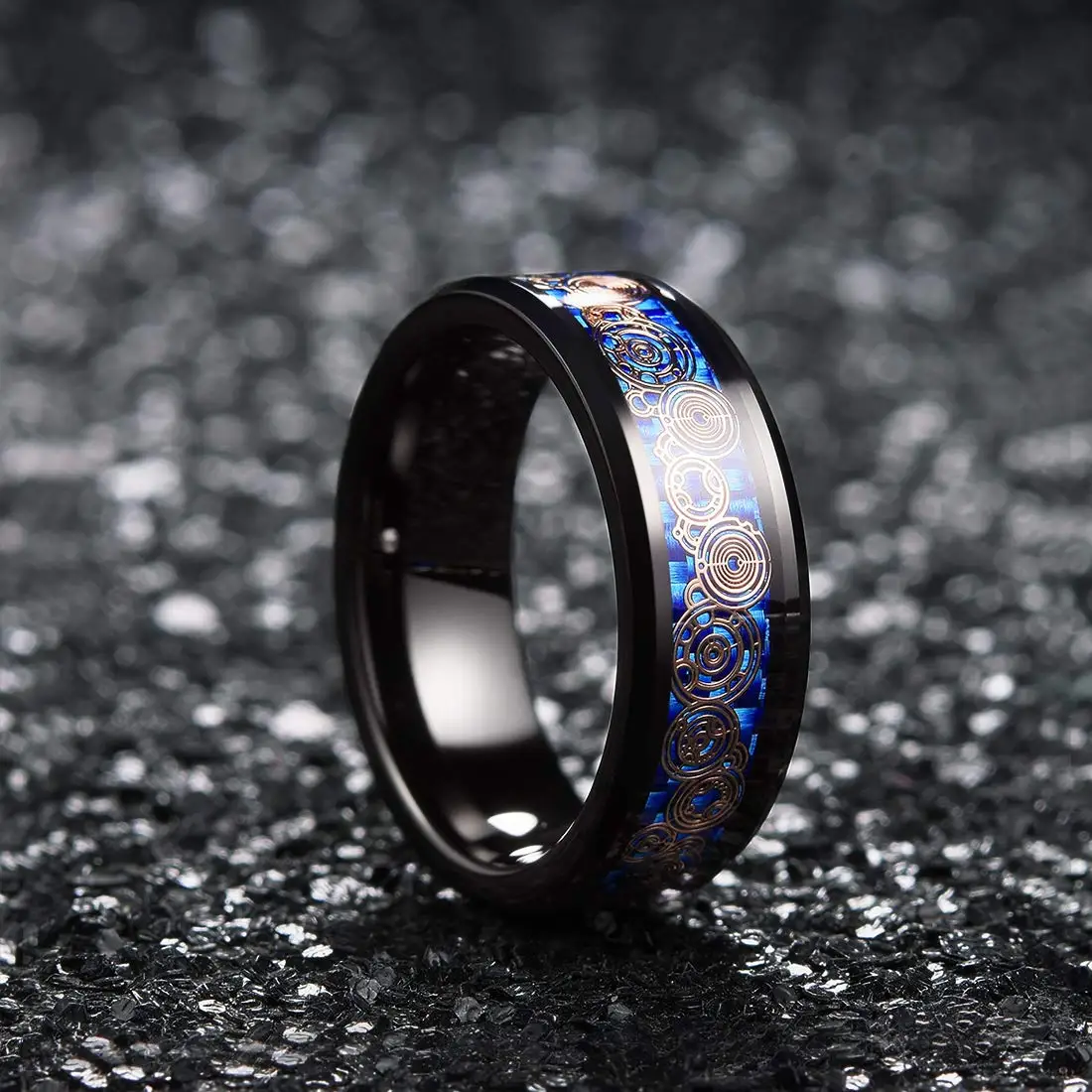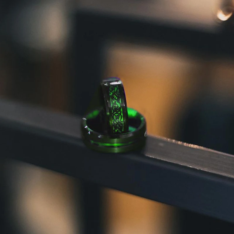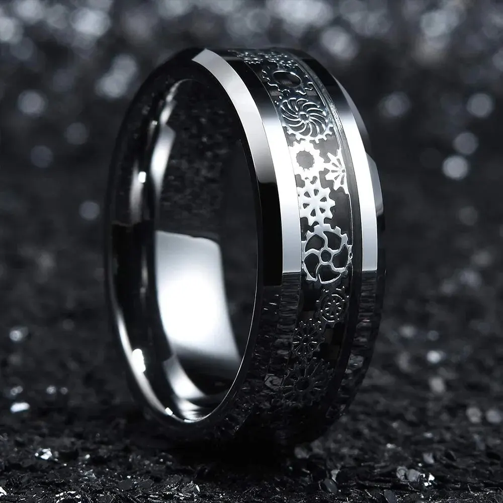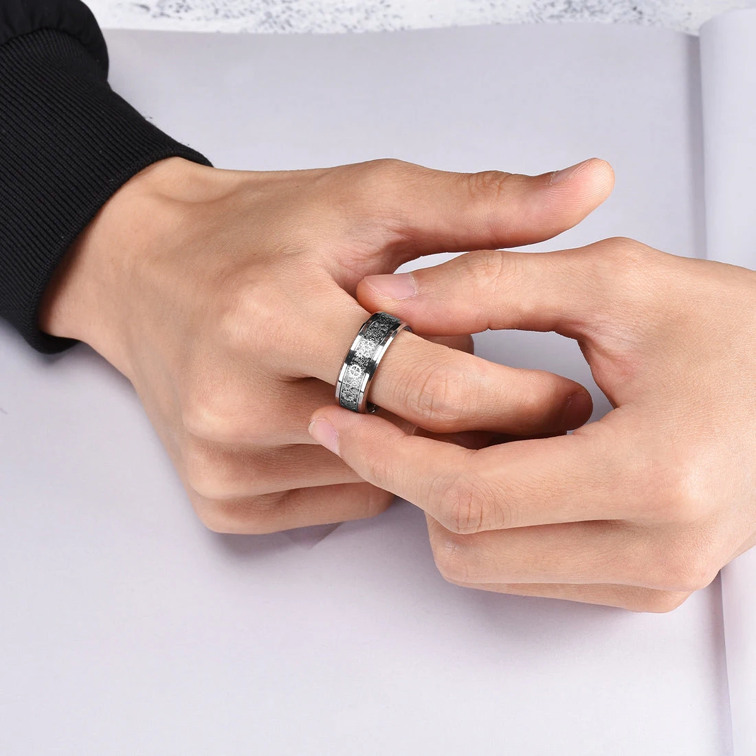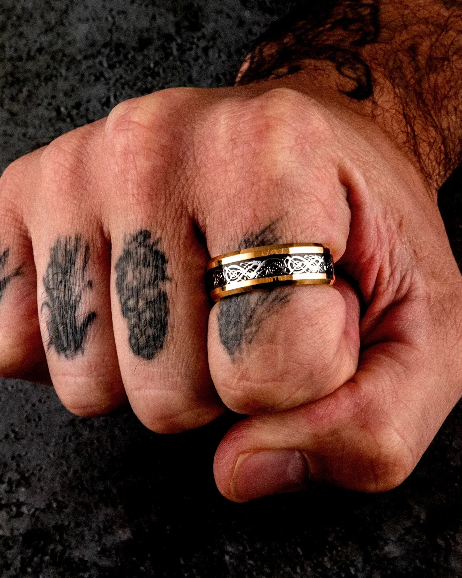 Fashion 8mm Men Stainless Steel Celtic Dragon Rings Inlaid Black Carbon Fiber Rings For Men Women Wedding Band Jewelry Wholesale