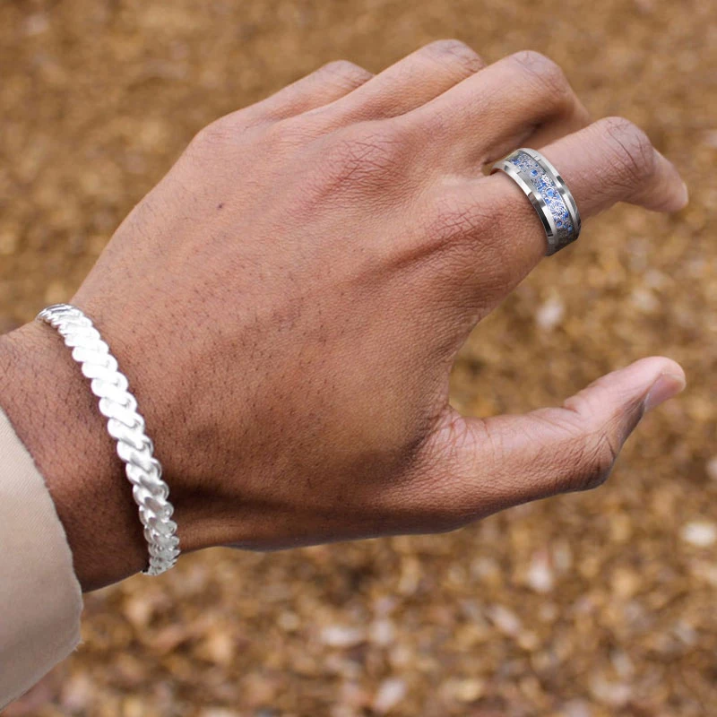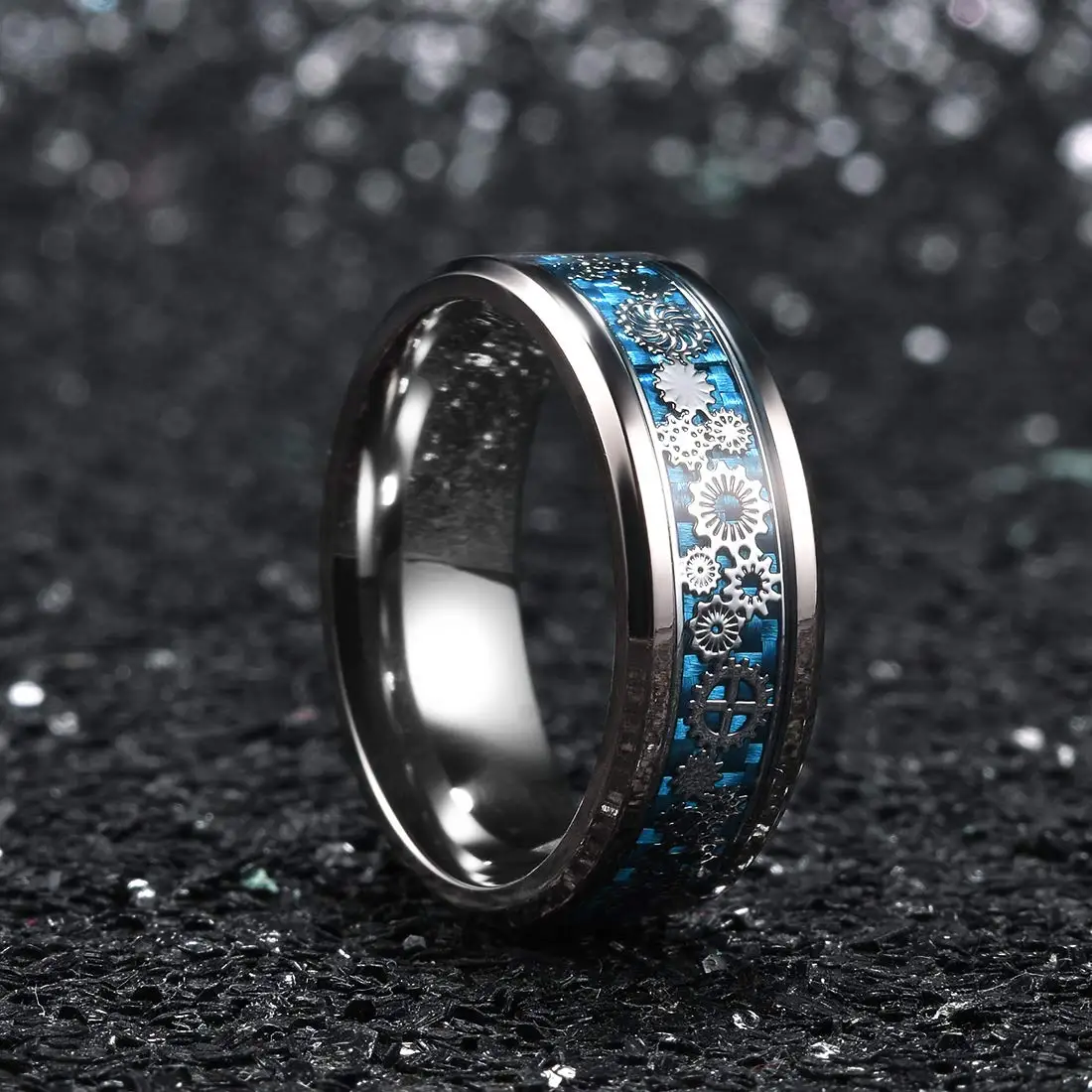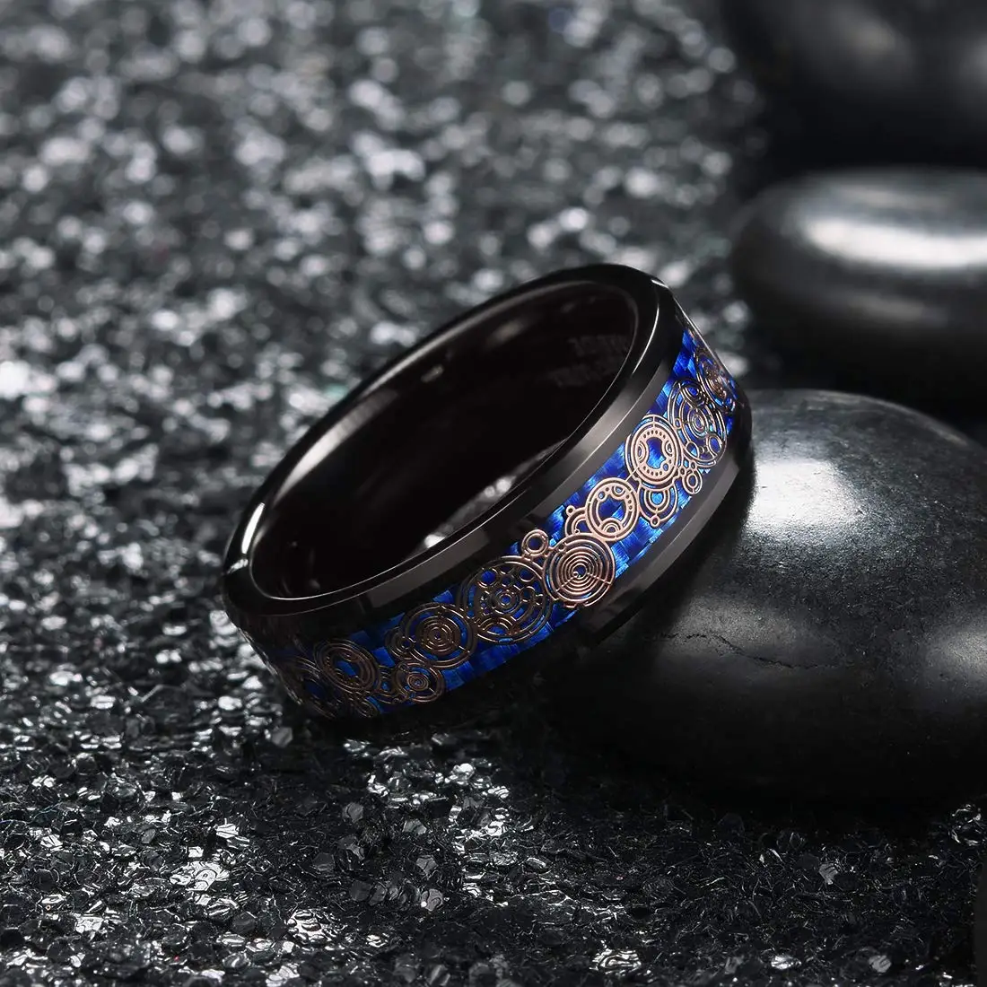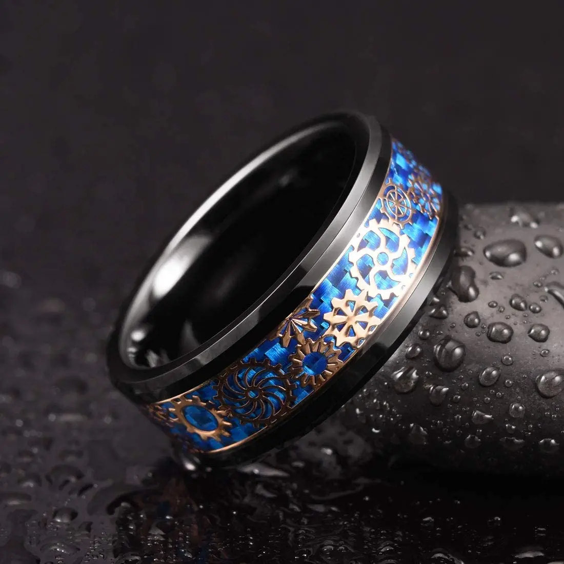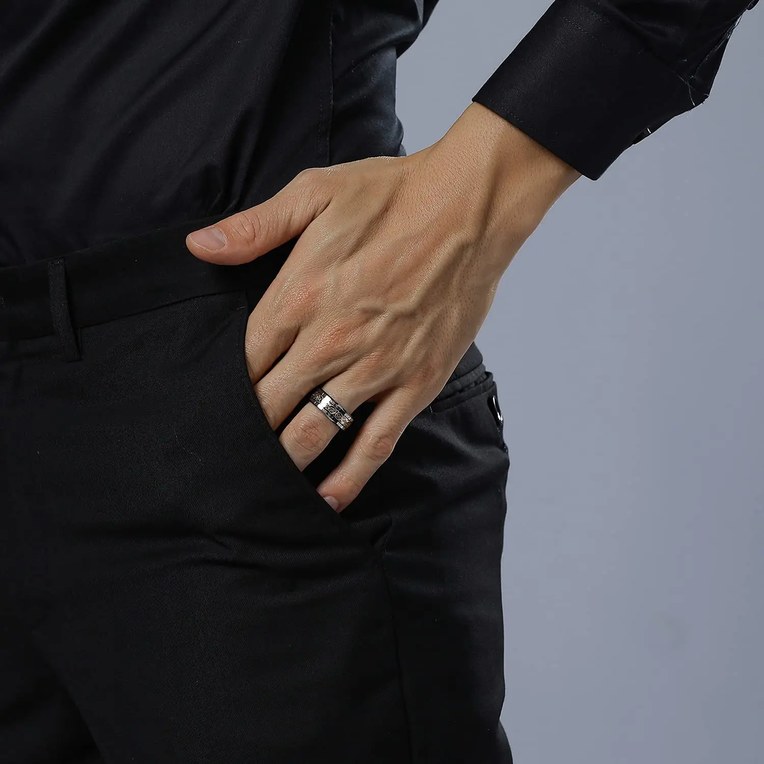 Fashion 8mm Men Stainless Steel Celtic Dragon Rings Inlaid Black Carbon Fiber Rings For Men Women Wedding Band Jewelry Wholesale