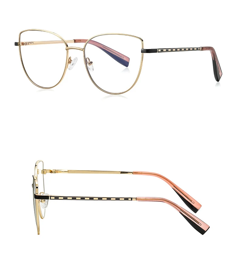Fashion Anti Blue Light Myopia Correction Glasses Women Optical Transparent Rose Gold Cat Eye Glasses Frame Prescription Eyewear