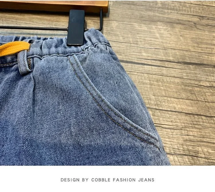 Fashion brand light elastic waist 9-point jeans men’s loose and versatile tapered summer small foot Harlan pants trend