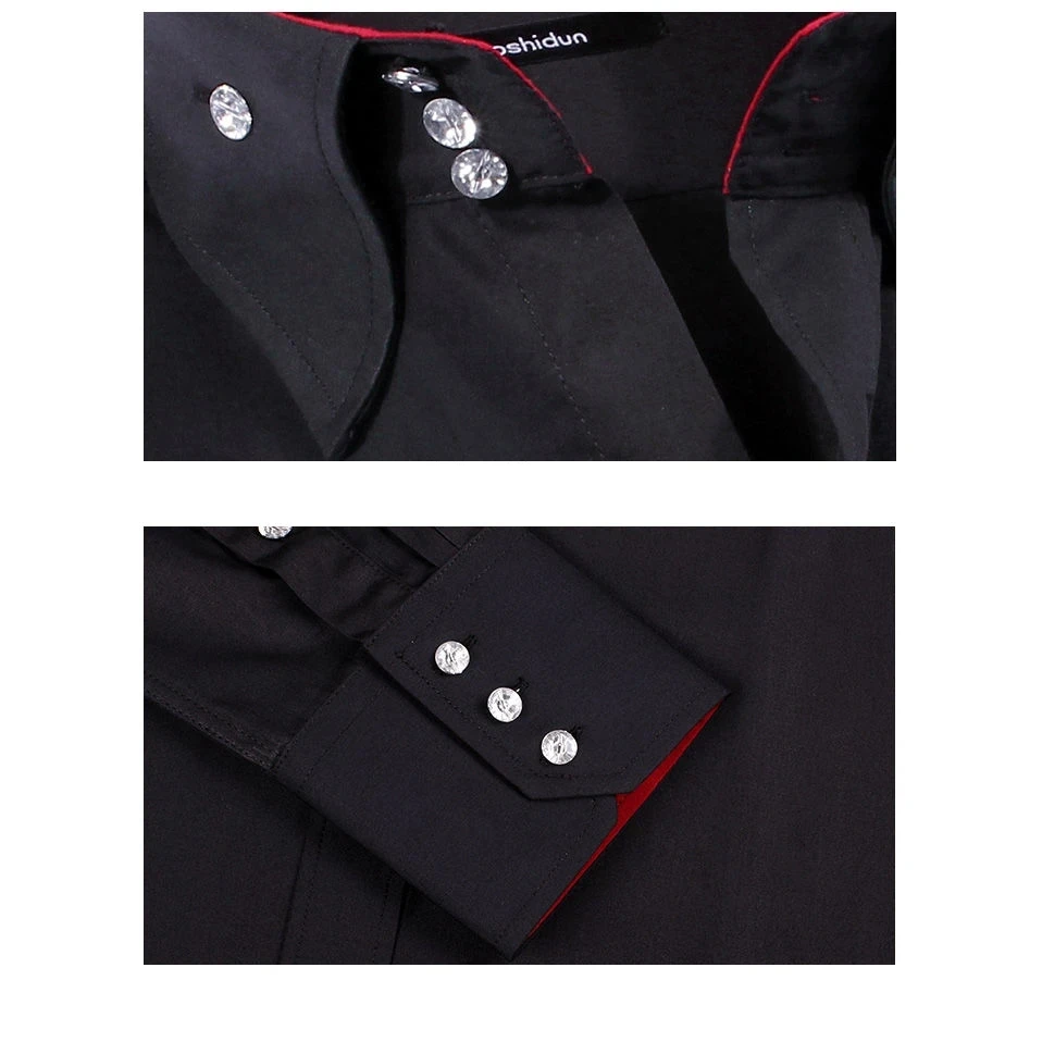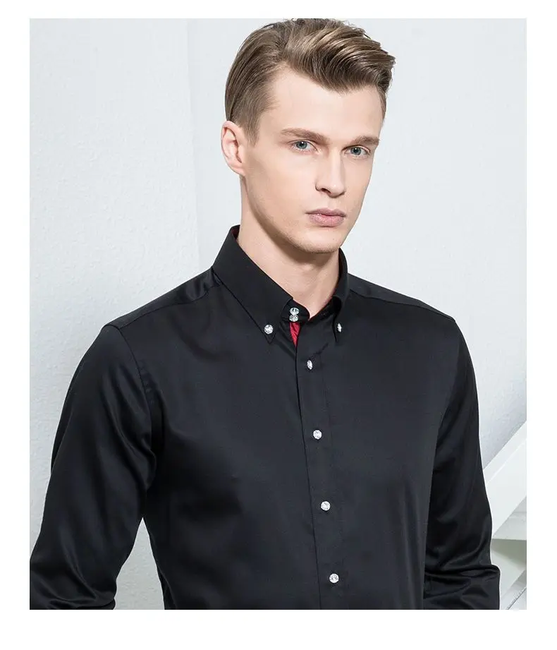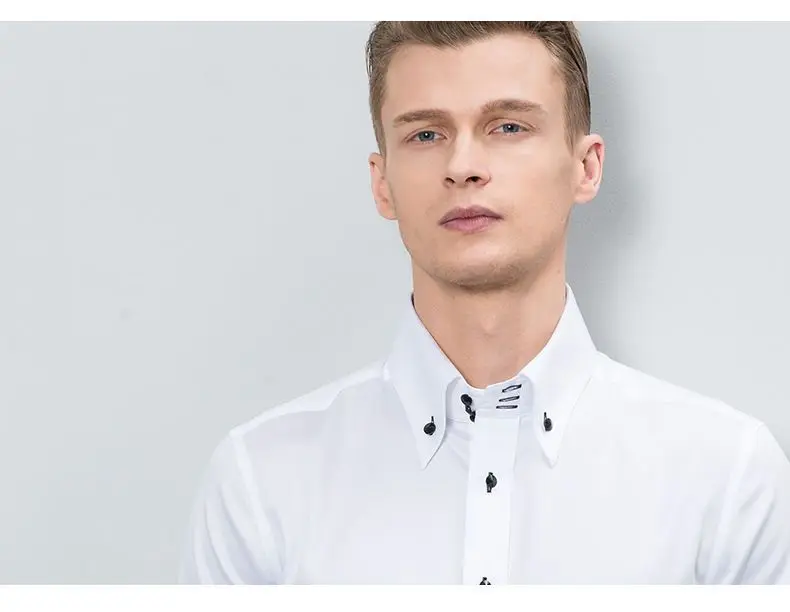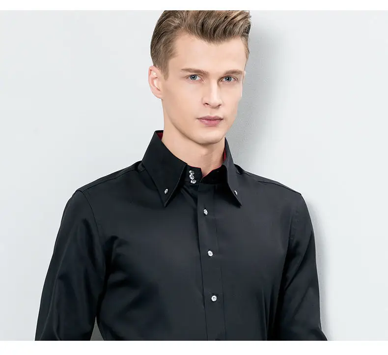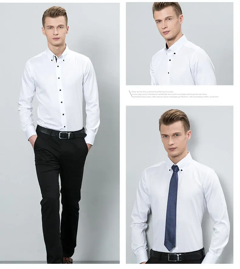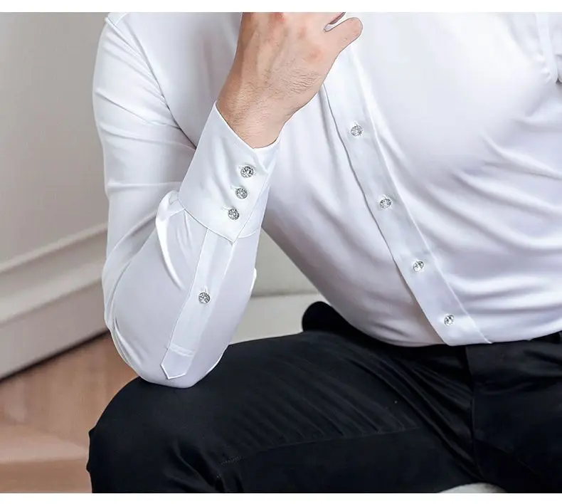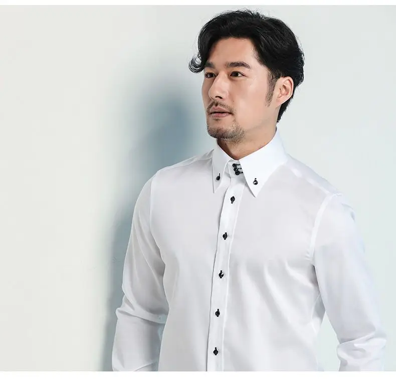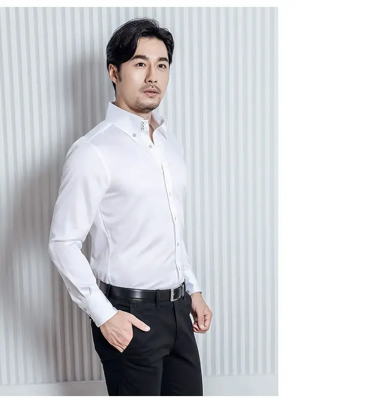 Fashion Drill Buckle Turtleneck Shirt for Men Casual Slim Fit Long Sleeves Formal Business Dress Shirts Button Down Collar White