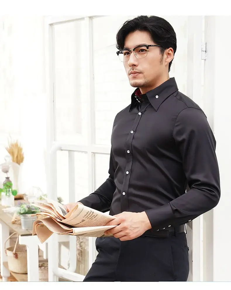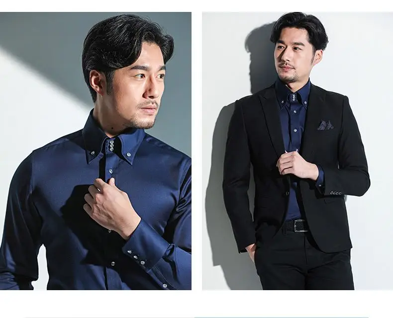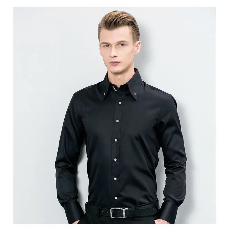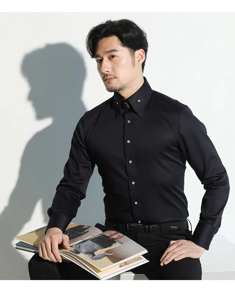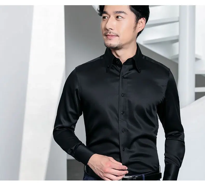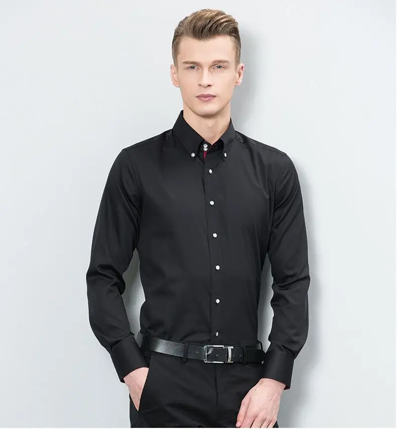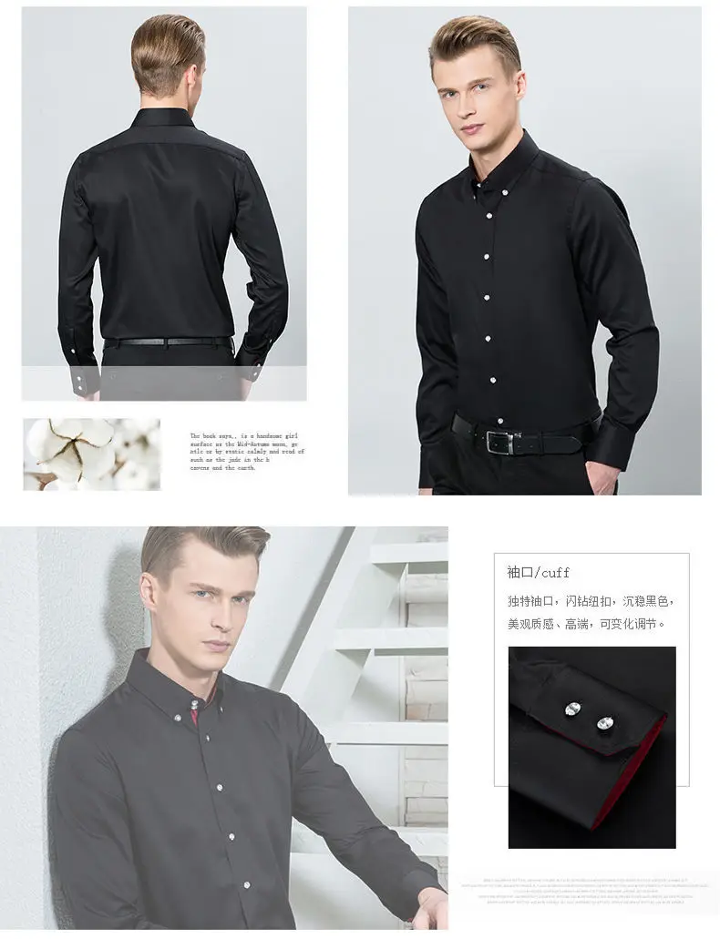 Fashion Drill Buckle Turtleneck Shirt for Men Casual Slim Fit Long Sleeves Formal Business Dress Shirts Button Down Collar White