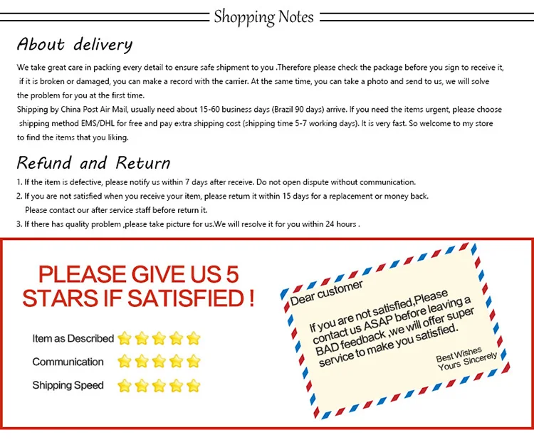 • If you did not receive the product within the guaranteed time( 45 days not including 2-5 day processing) you can request a refund or a reshipment.