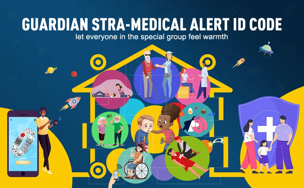 Fashion Stainless Steel Medical Bracelets Free Engraving  Men’s and Women’s QR Code Emergency Alarm ID Wrist Strap Bracelet