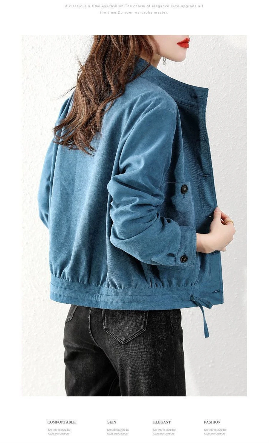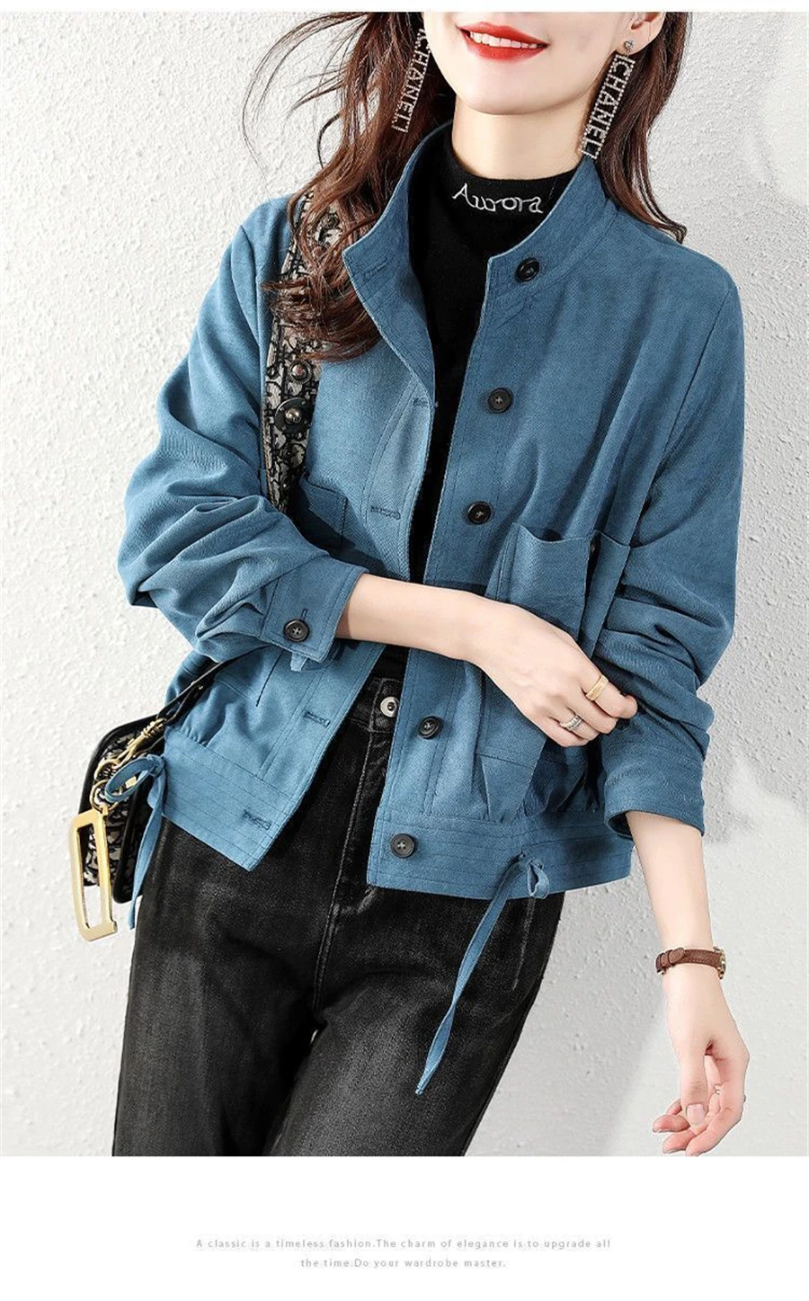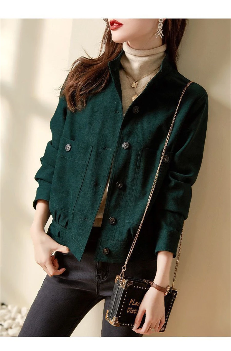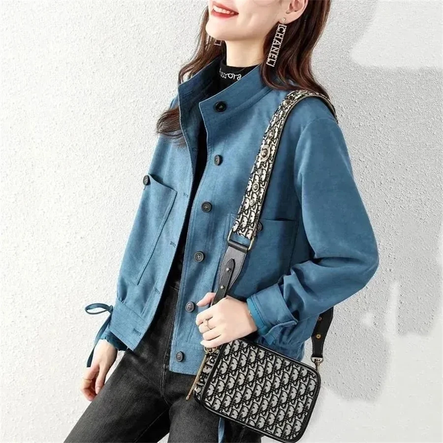 Fashion Stand Collar Jackets For Women Spring Fall Short Chaquetas Loose Long Sleeve Outerwear Single Breasted Vintage Ceketler