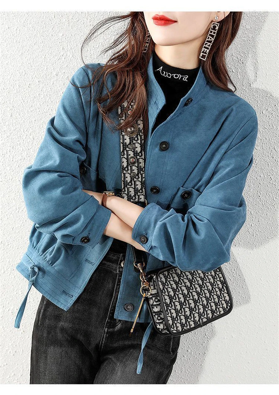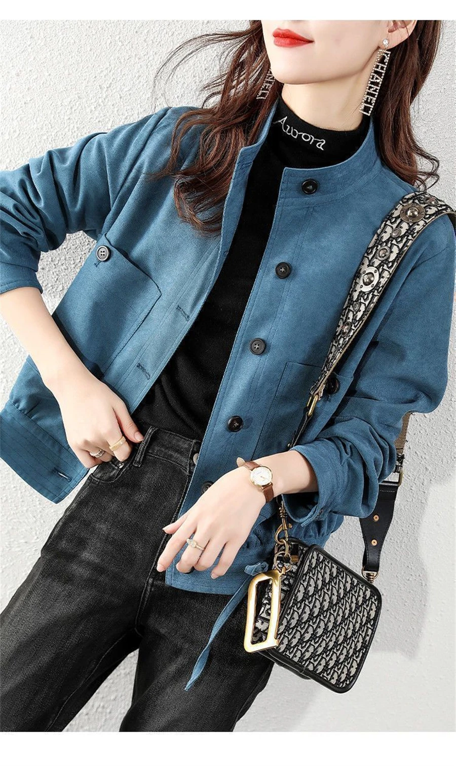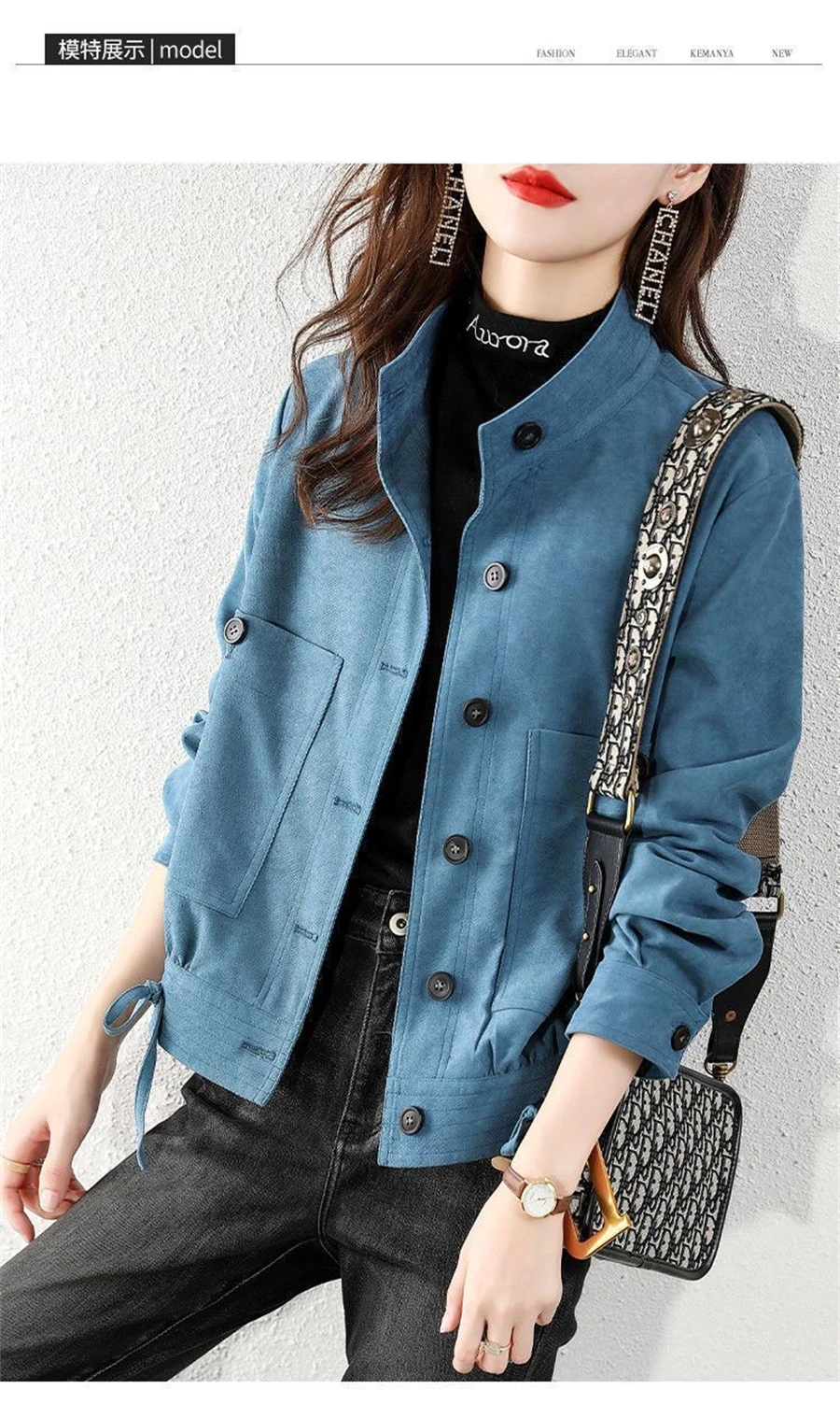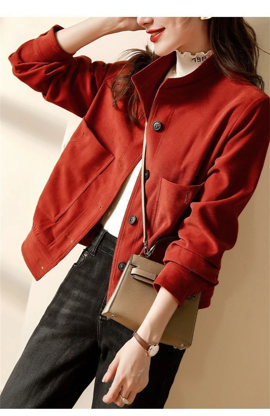 Fashion Stand Collar Jackets For Women Spring Fall Short Chaquetas Loose Long Sleeve Outerwear Single Breasted Vintage Ceketler