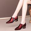 FHANCHU 2022 New Women Deep High Heels,Sheepskin Leather Shoes,Vogue Mid Block Heel,Pointed Toe,British Style,BLUE,RED,,Dropship