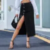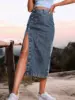 FICHOR Maxi Jeans Skirt Women Denim Long Summer 2023 Vintage Side Split Denim Skirt Women Long Korean
