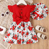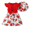 Floral print, ruffle design, button round neck, flying sleeves A-line dress with belt, sweet casual summer dress, matching floral sun hat, exquisite design details make your little one cute and charming.