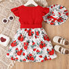 Kids Baby Girls Floral Dress Summer Flying Sleeves Princess A-line Dress and Sun Hat Set for Toddler Beach Party Wear