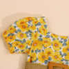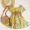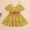 Yellow floral printed pattern square collar short sleeve dress with waistband, making your kids lovely and beautiful.