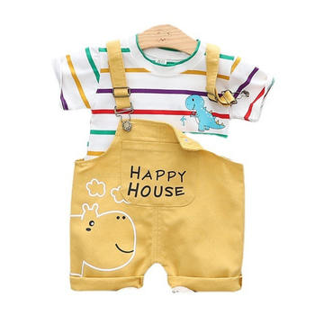 Summer Children Cotton Baby Boy Girl Clothes Cartoon Stripe T Shirts Bib Shorts 2Pcs/Sets Infant Kids Fashion Toddler Tracksuits