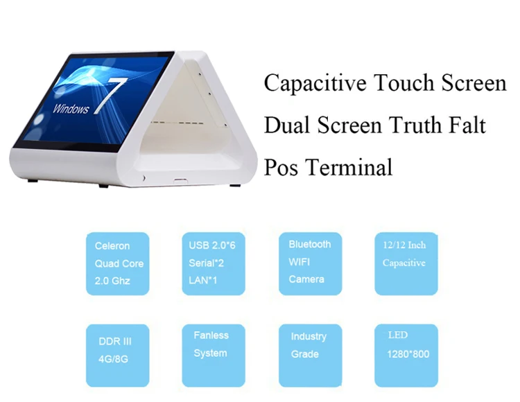 Free Shipping pos point of sale 12 inch double screen pos touch all in one pc Flat screen capacitive touch screen