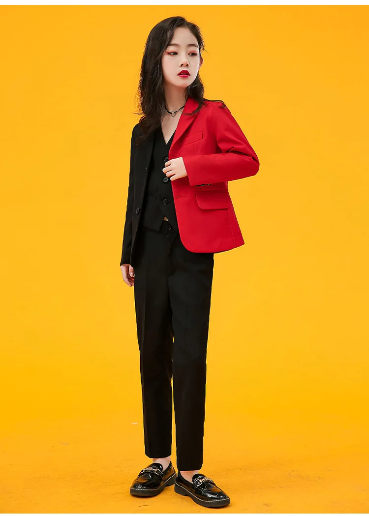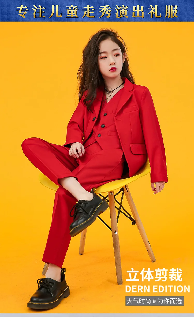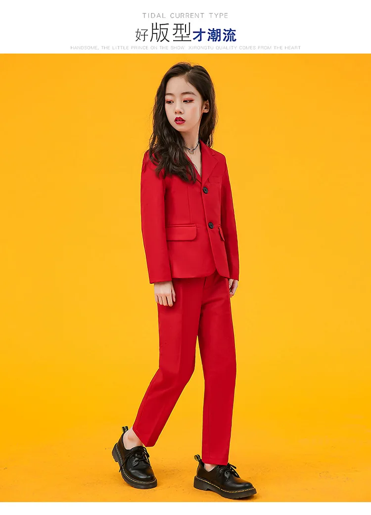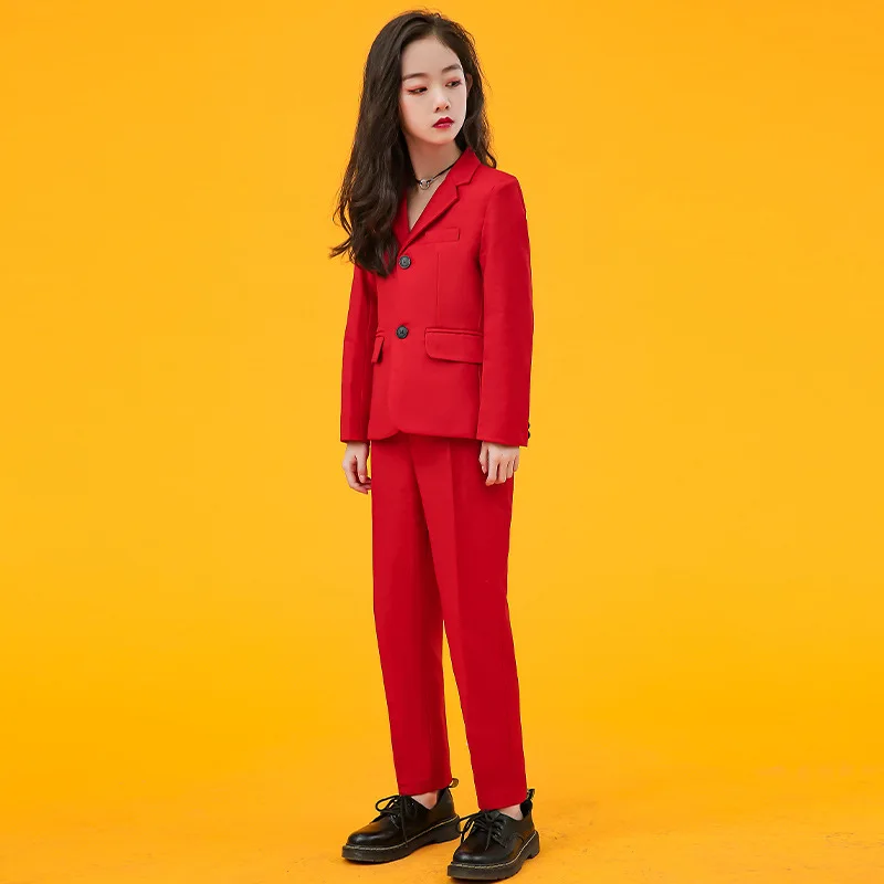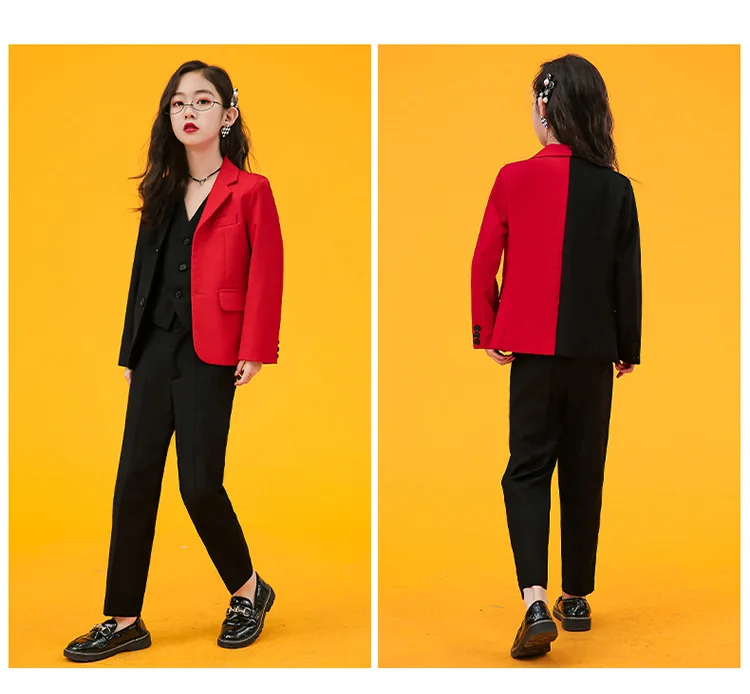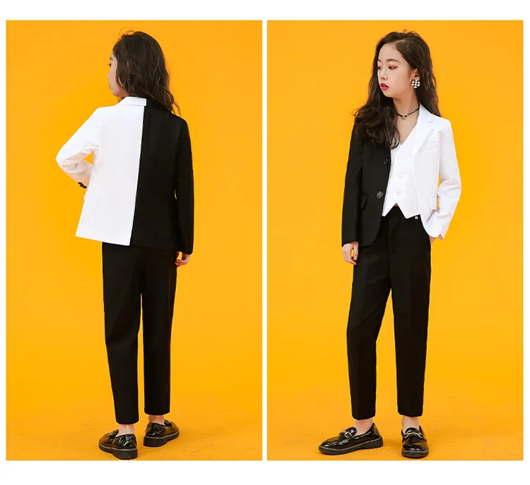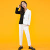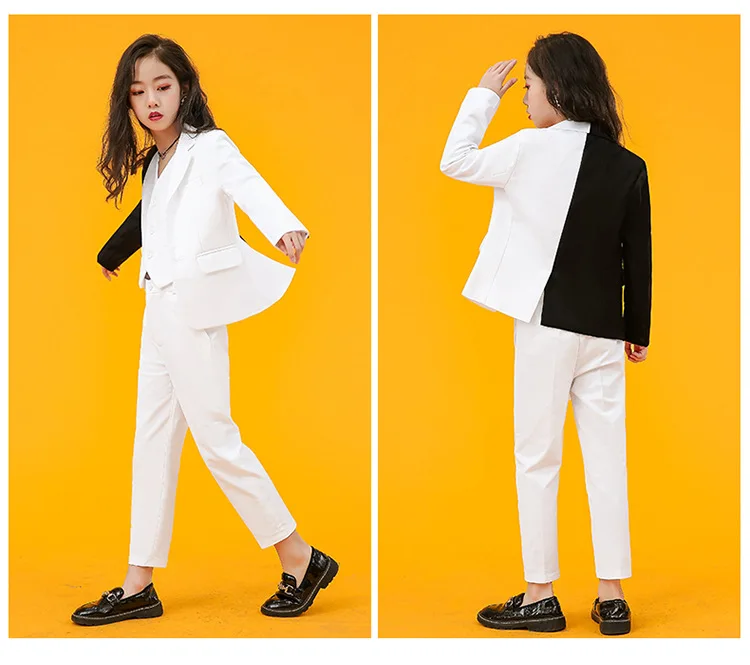 Girls Fashion AB Matching Color Dress Suit Set Children Party Performance Catwalk Show Costume Kids Blazer Pants Clothes Set