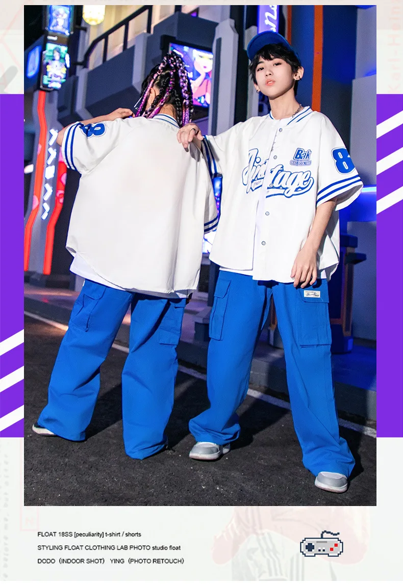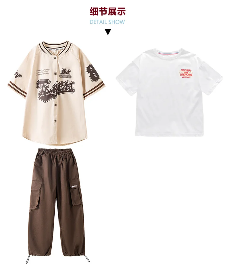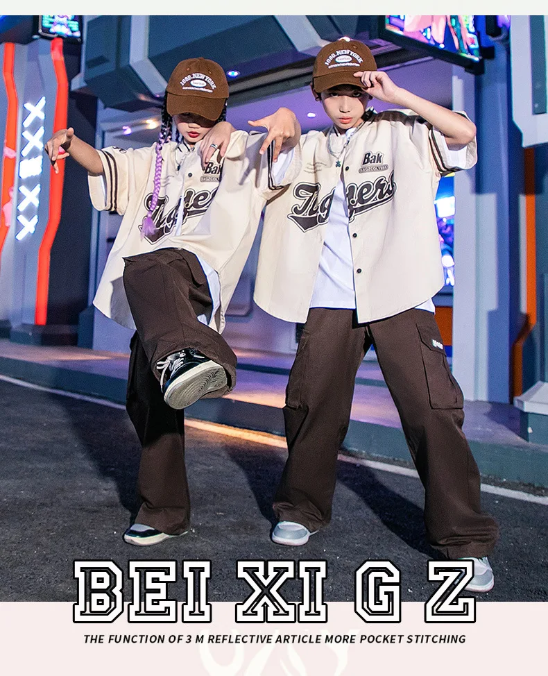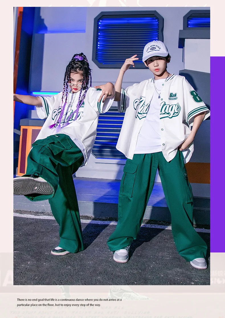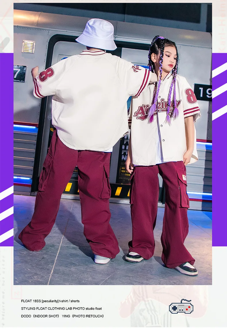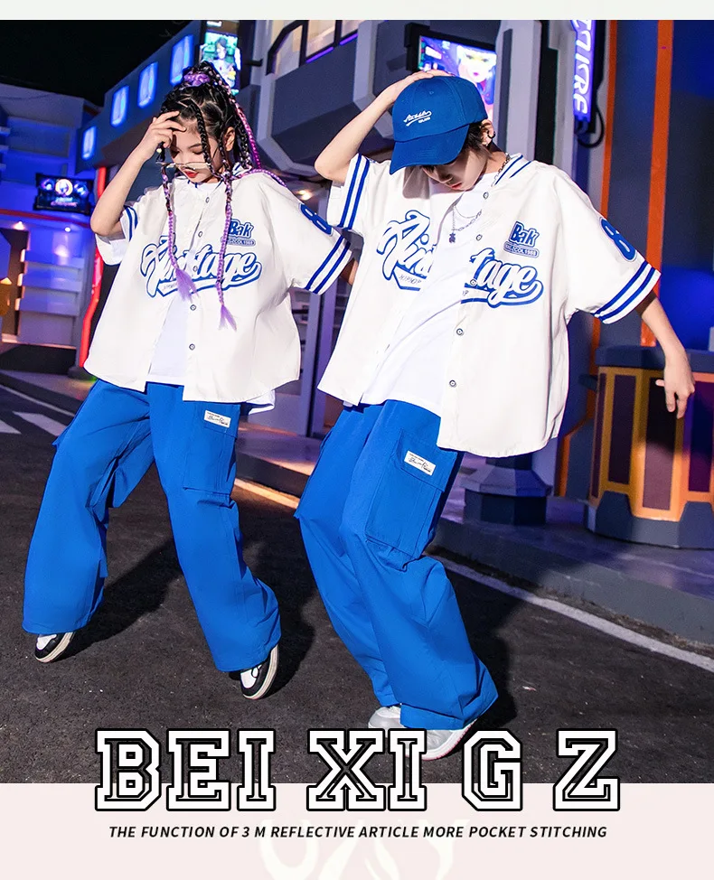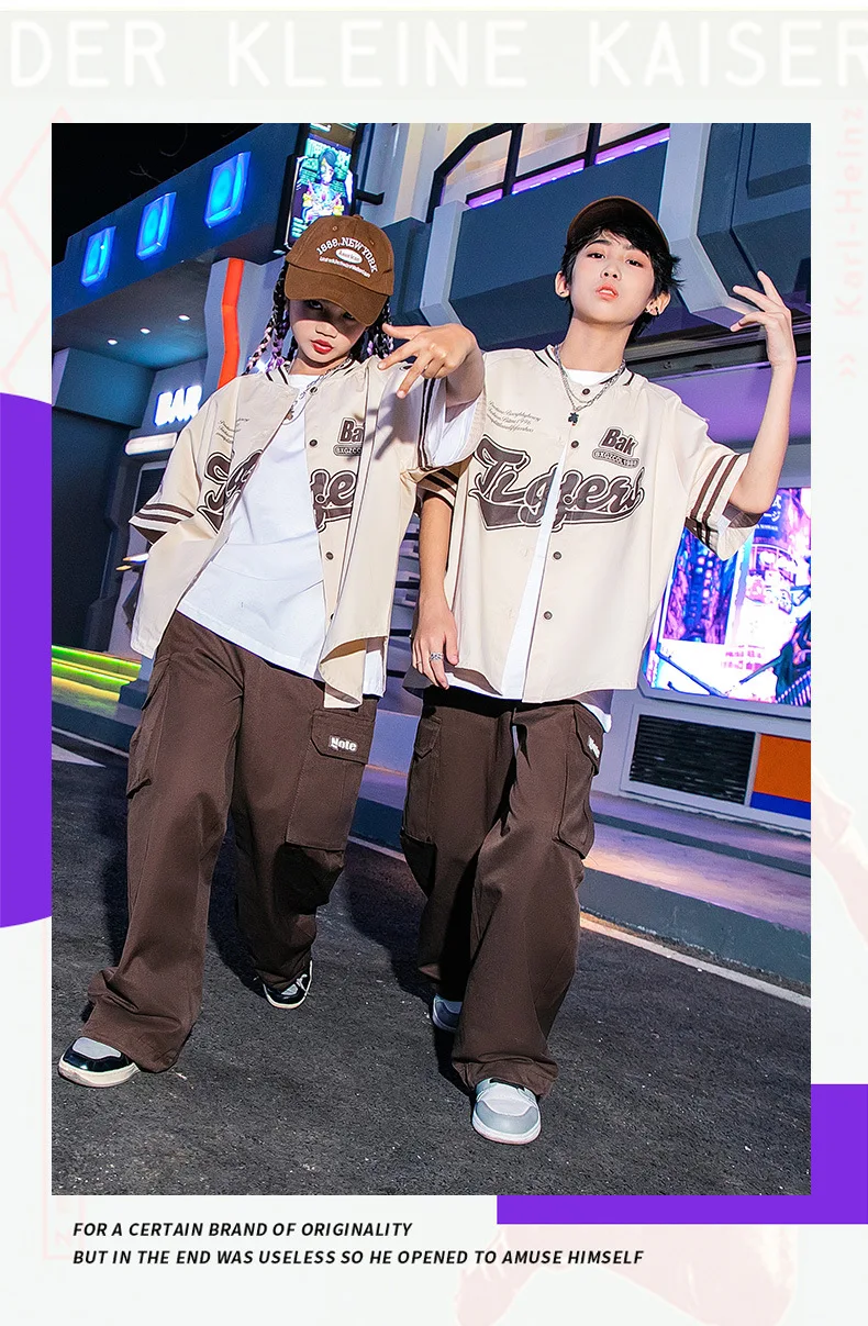 Girls Hip Hop Cool Shirt Costumes Boys Street Dance Cargo Pants Child Baseball Jacket Streetwear Kids Jazz Joggers Clothes Sets