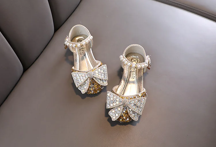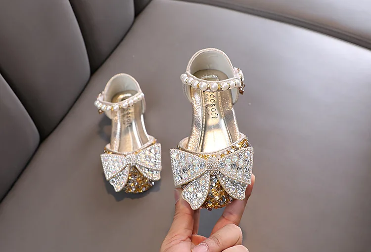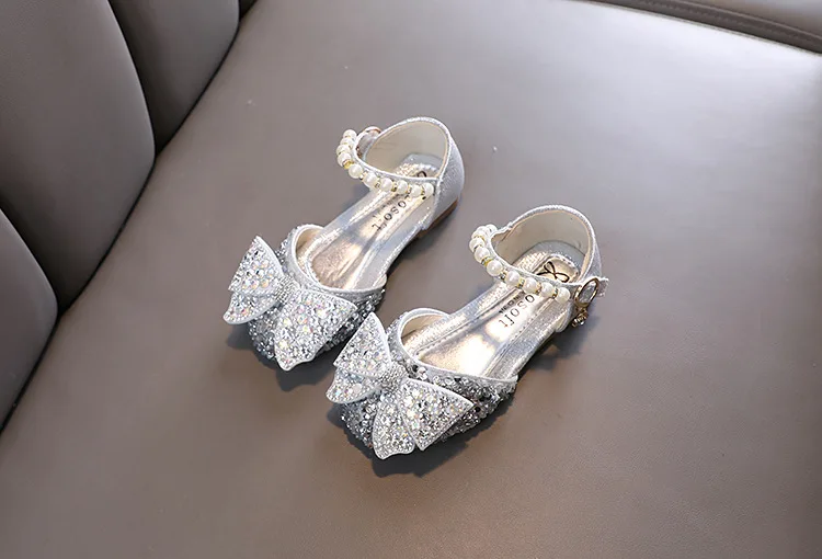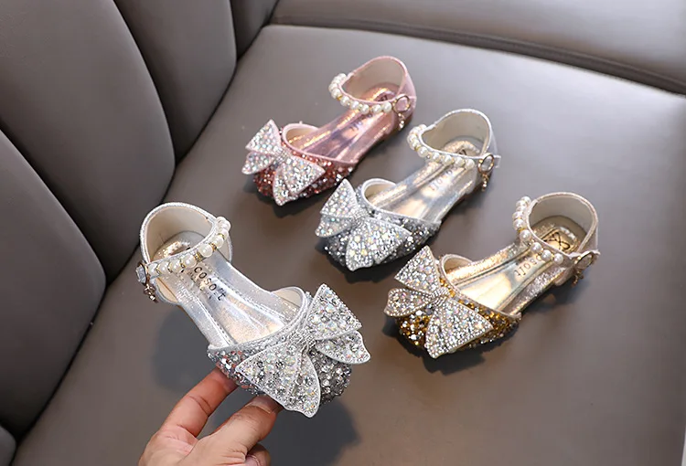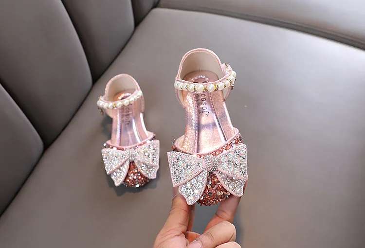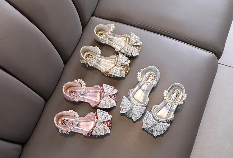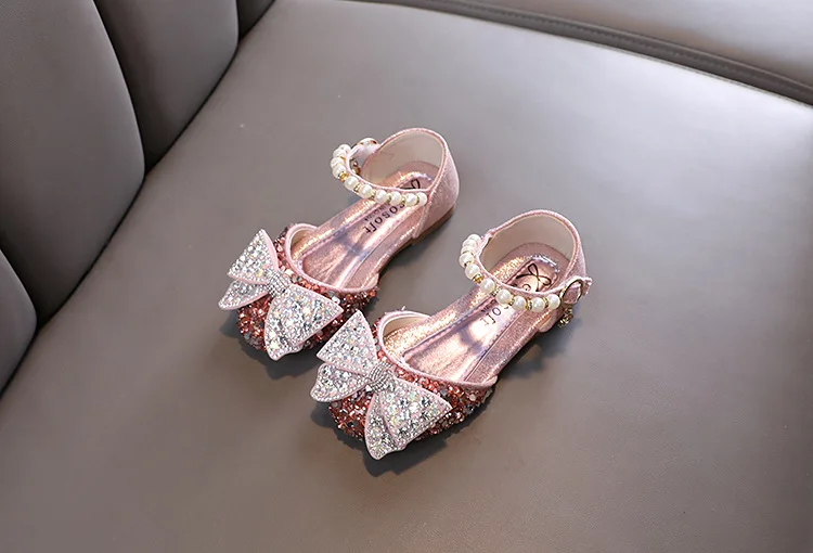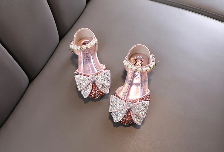Girls Pink Princess Sandals Summer New Fashion Cute Shiny Bow Dance Shoes Children’s Sandals Kids Flat Shoes J30