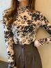 Girls Transparent Corduroy Printing Mesh T-Shirts Tees Female Turtleneck Full Sleeve Tshirt Tops For Women DX2125